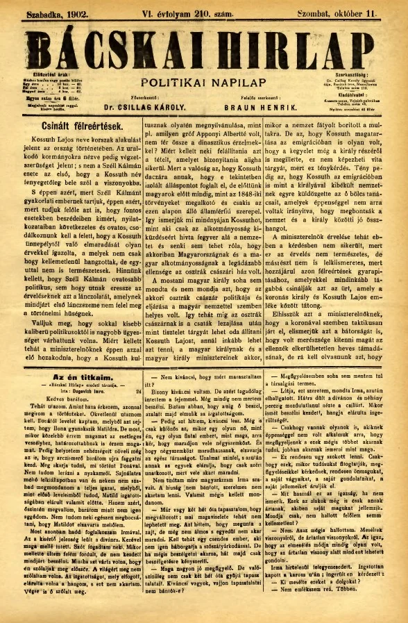 Bácskai Hirlap, 6. évf. 1902. október 11. 210. sz.