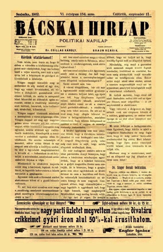 Bácskai Hirlap, 6. évf. 1902. szeptember 11. 184. sz.