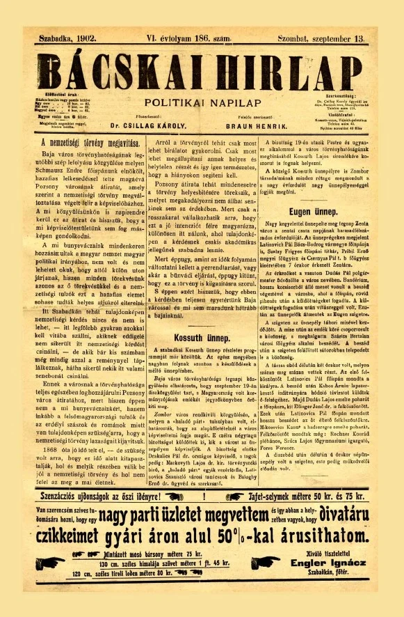 Bácskai Hirlap, 6. évf. 1902. szeptember 13. 186. sz.