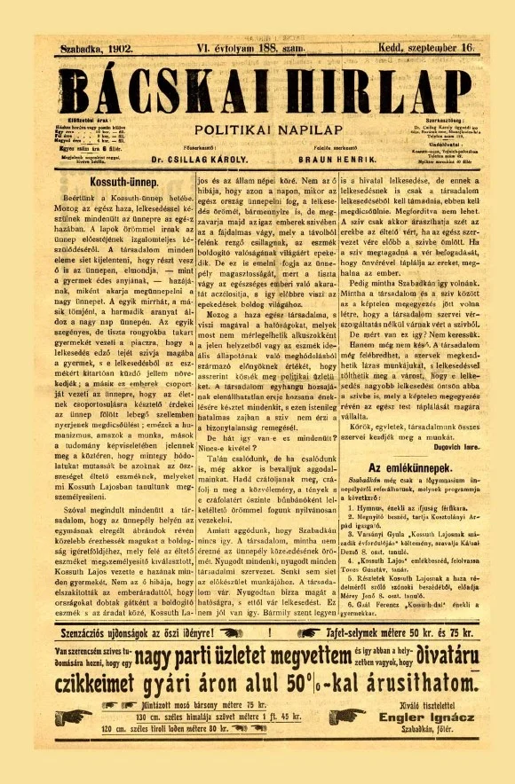 Bácskai Hirlap, 6. évf. 1902. szeptember 16. 188. sz.