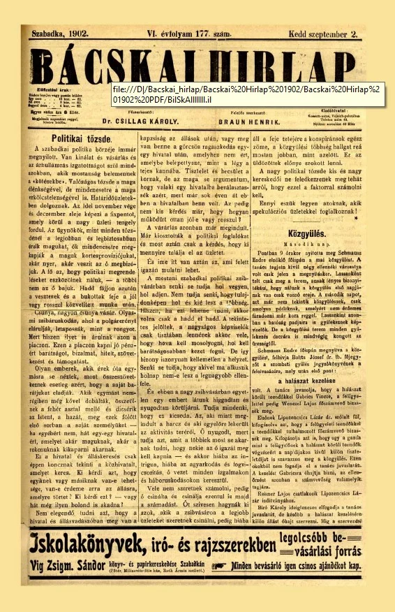 Bácskai Hirlap, 6. évf. 1902. szeptember 2. 177. sz.