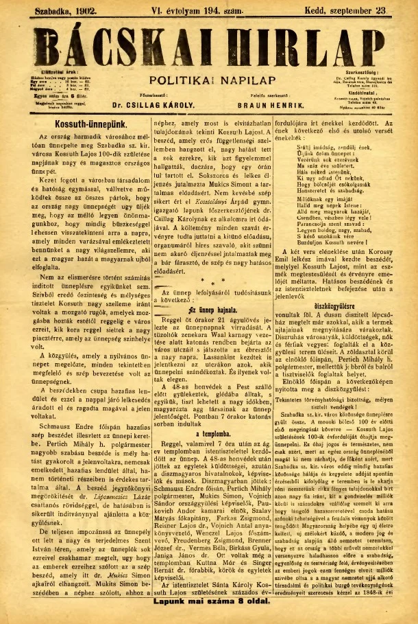 Bácskai Hirlap, 6. évf. 1902. szeptember 23. 194. sz.