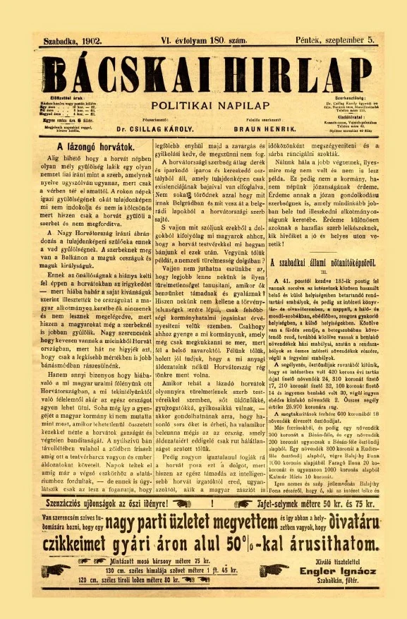 Bácskai Hirlap, 6. évf. 1902. szeptember 5. 180. sz.