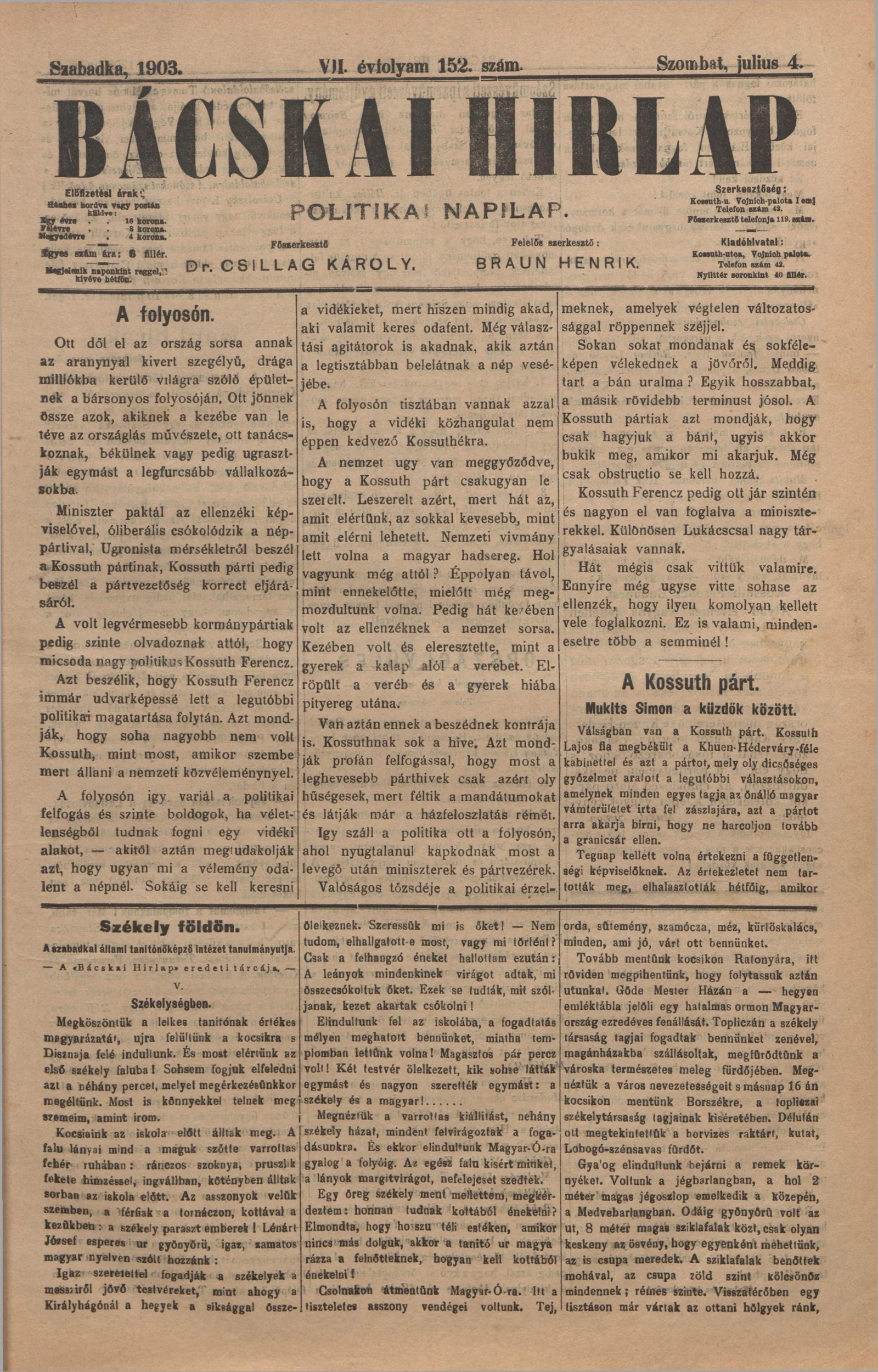Bácskai Hirlap, 7. évf. 1903. július 4. 152. sz.