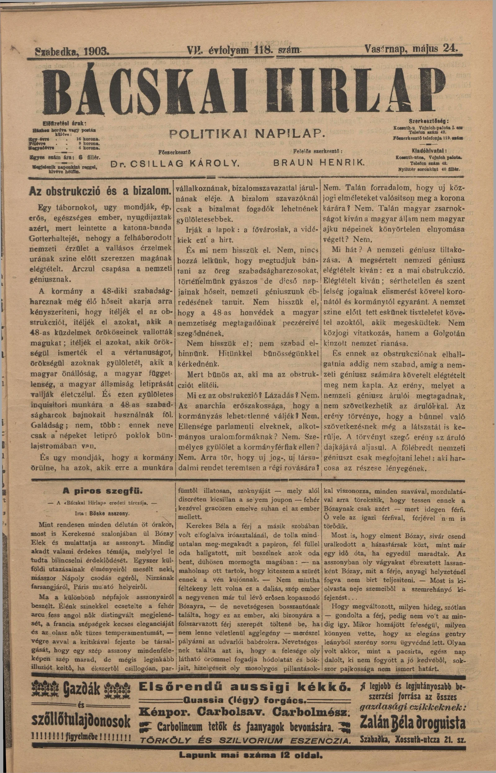 Bácskai Hirlap, 7. évf. 1903. május 24. 118. sz.