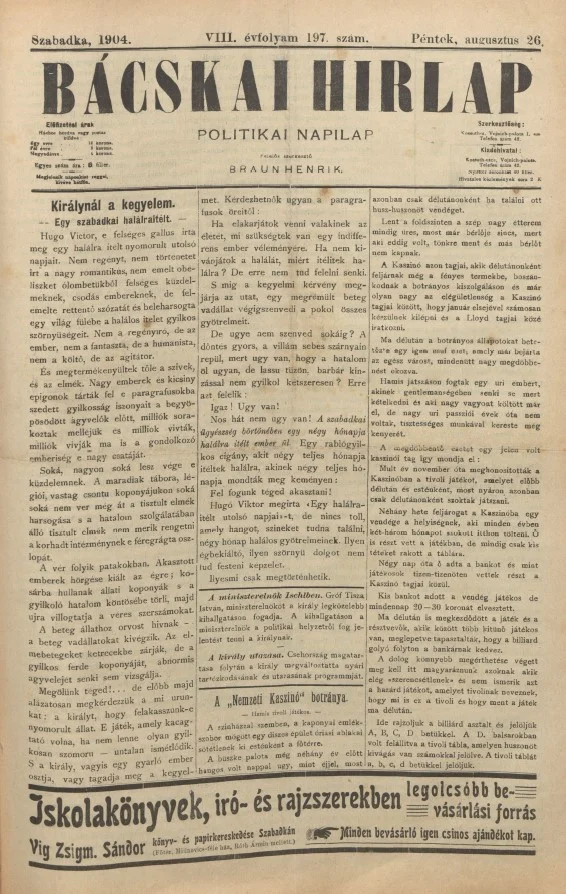 Bácskai Hirlap, 8. évf. 1904. augusztus 26. 197. sz.