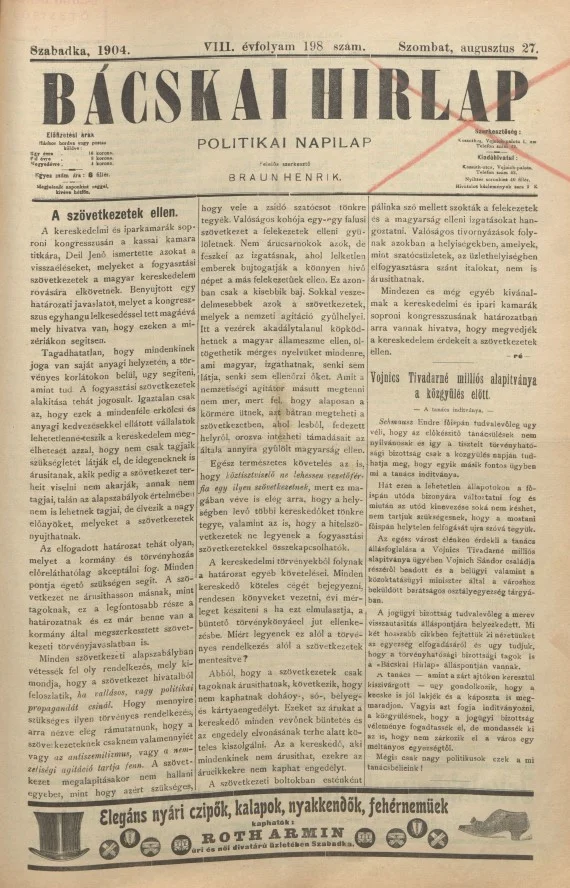 Bácskai Hirlap, 8. évf. 1904. augusztus 27. 198. sz.