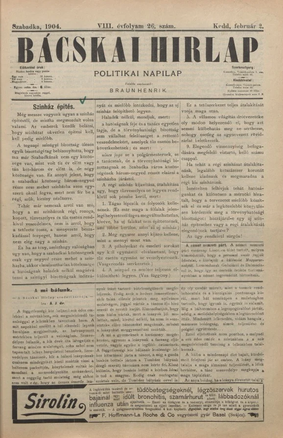 Bácskai Hirlap, 8. évf. 1904. február 2. 26. sz.