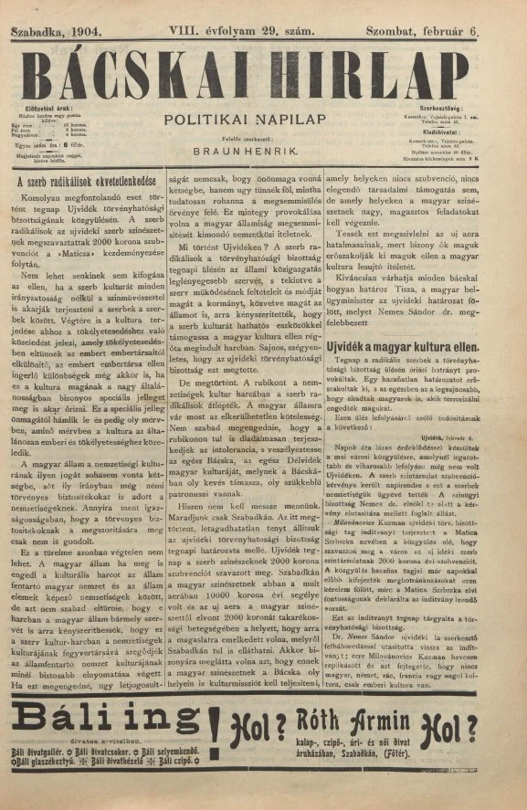 Bácskai Hirlap, 8. évf. 1904. február 6. 29. sz.