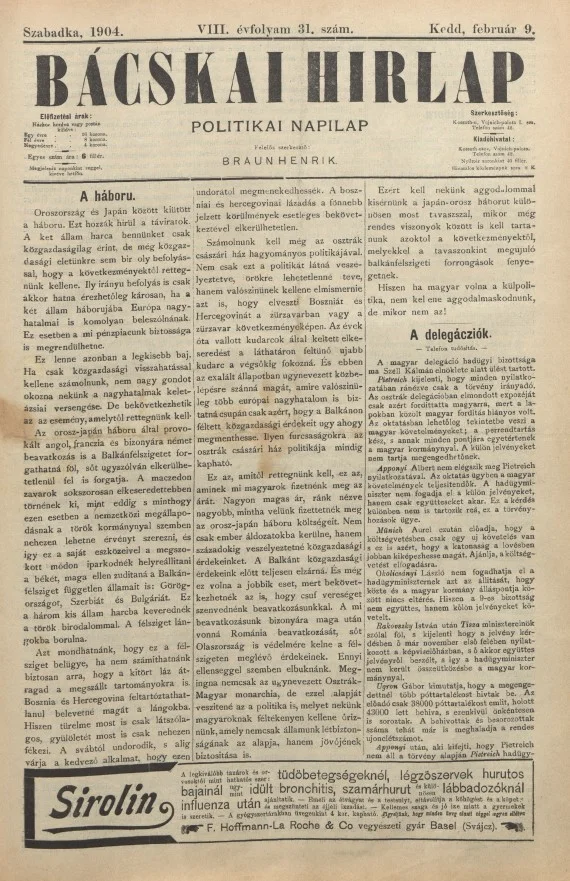 Bácskai Hirlap, 8. évf. 1904. február 9. 31. sz.