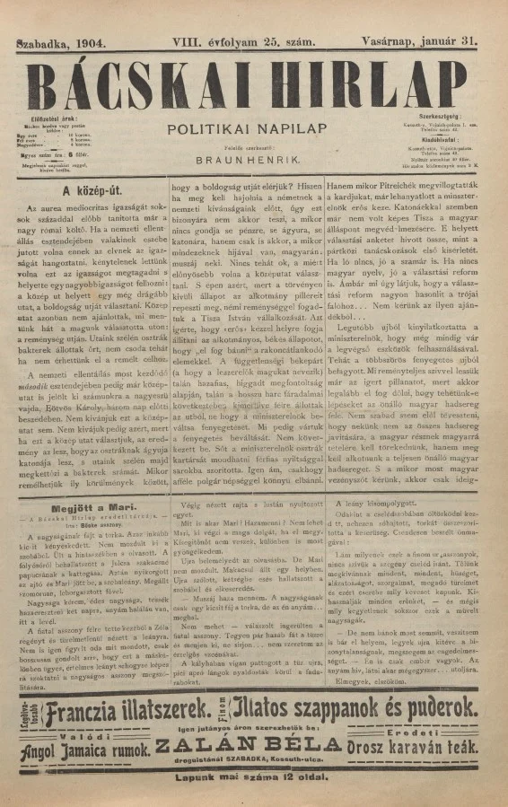 Bácskai Hirlap, 8. évf. 1904. január 31. 25. sz.