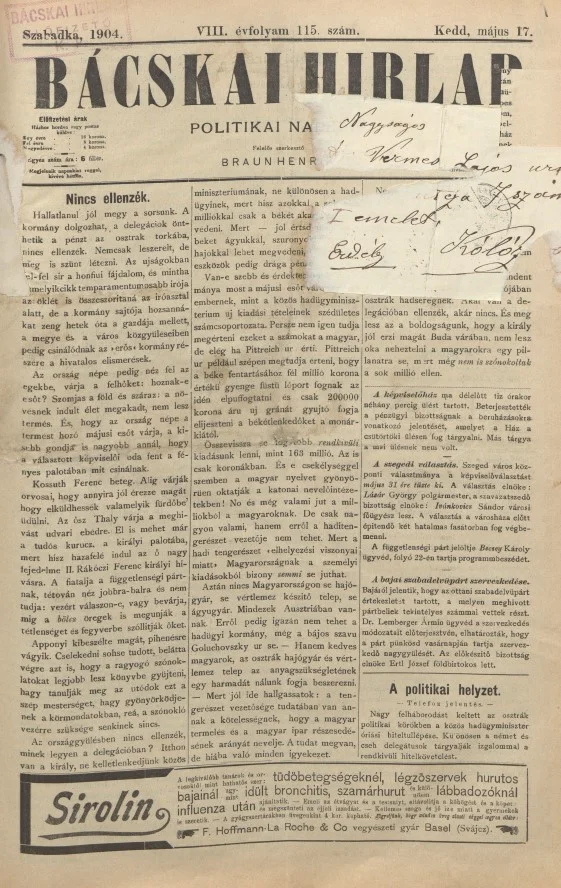 Bácskai Hirlap, 8. évf. 1904. május 17. 115. sz.