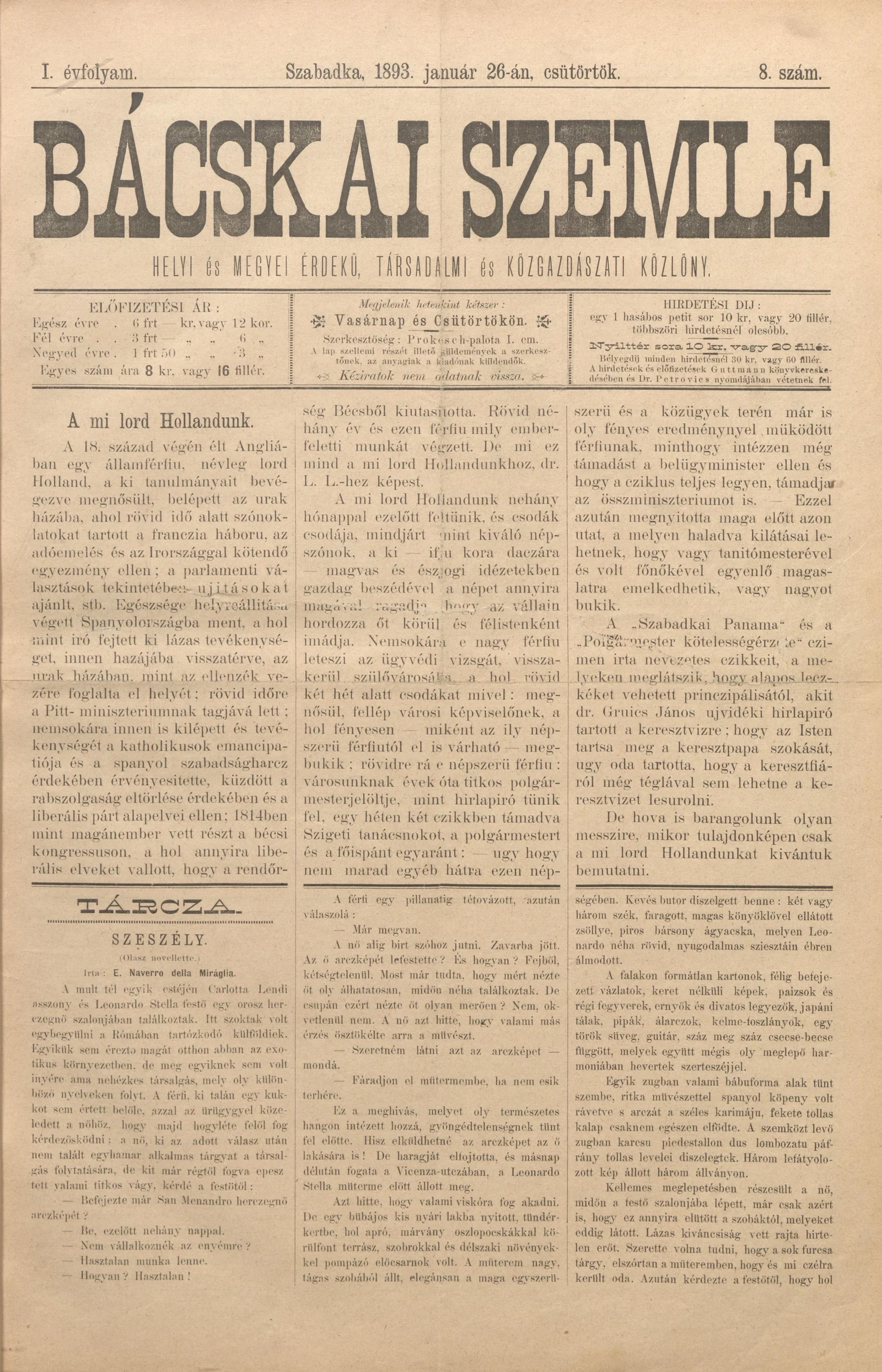 Bácskai Szemle, 1. évf. 1893. január 26. 8. sz.