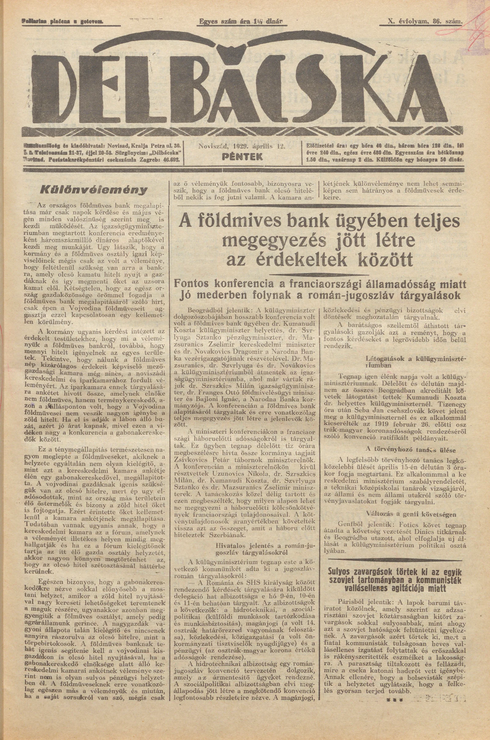 Délbácska, 10. évf. 1929. április 12. 86. sz.