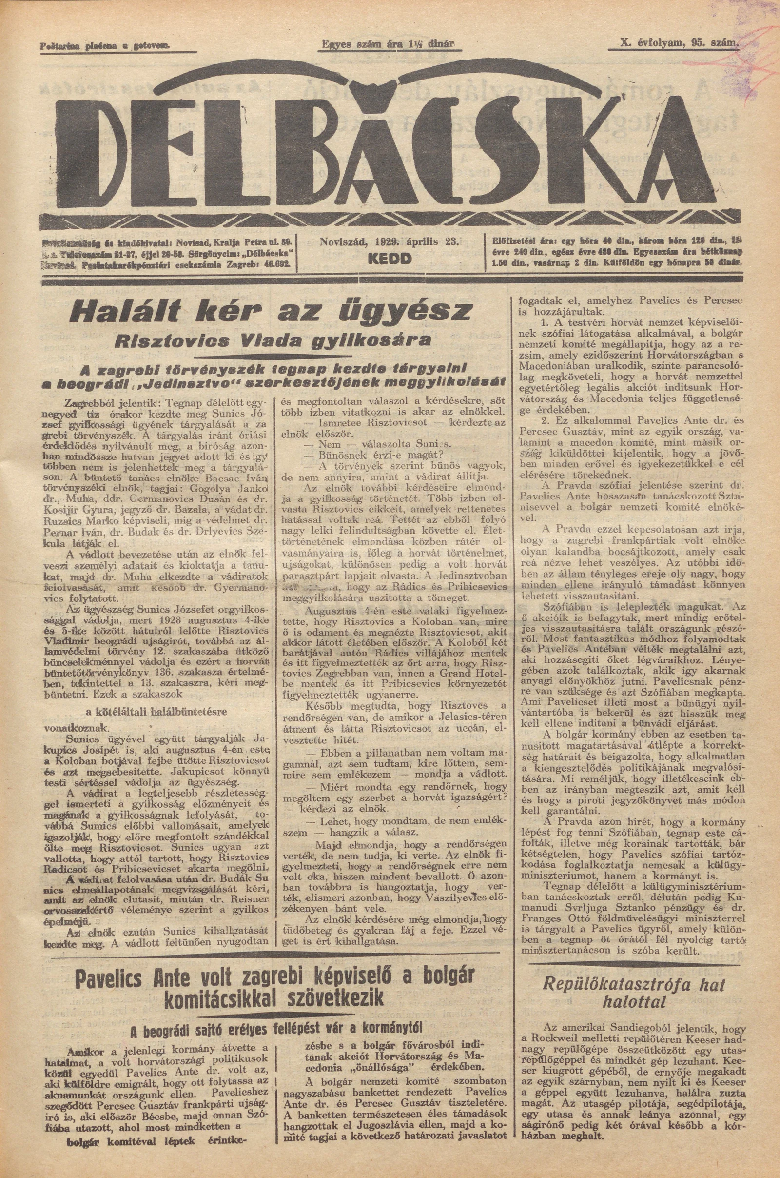 Délbácska, 10. évf. 1929. április 23. 95. sz.