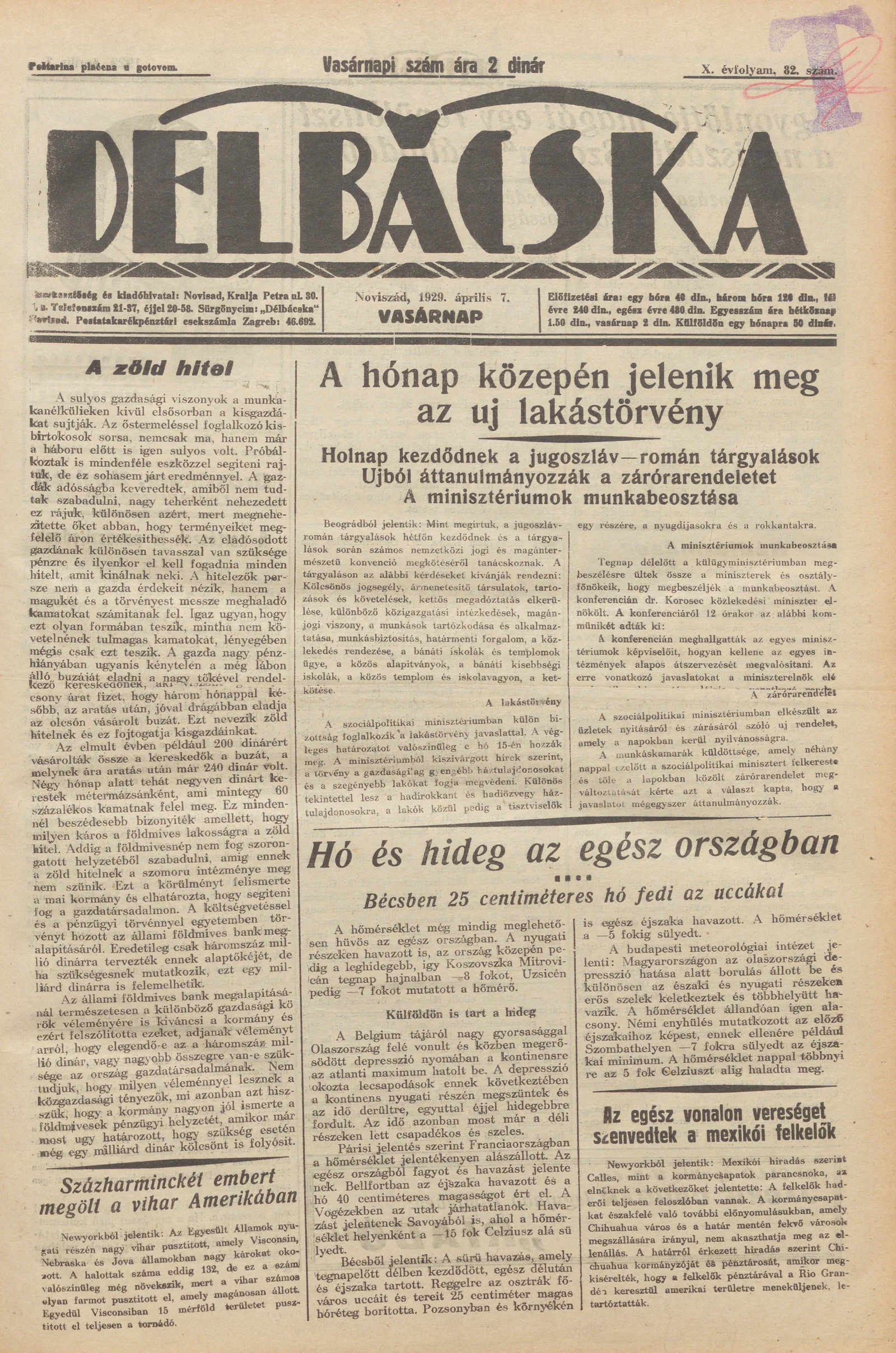 Délbácska, 10. évf. 1929. április 7. 82. sz.