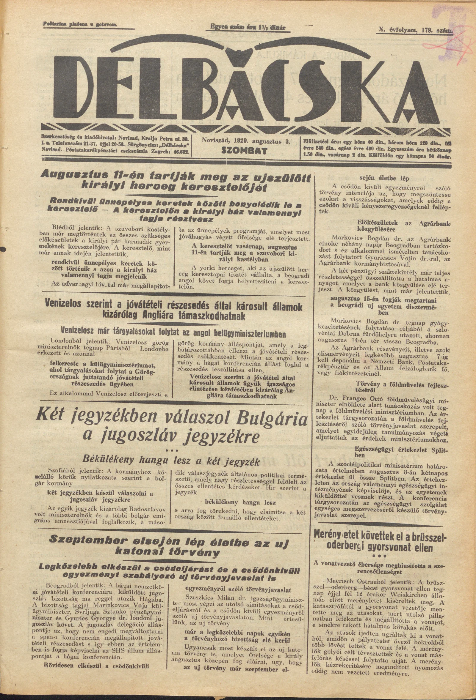 Délbácska, 10. évf. 1929. augusztus 3. 179. sz.
