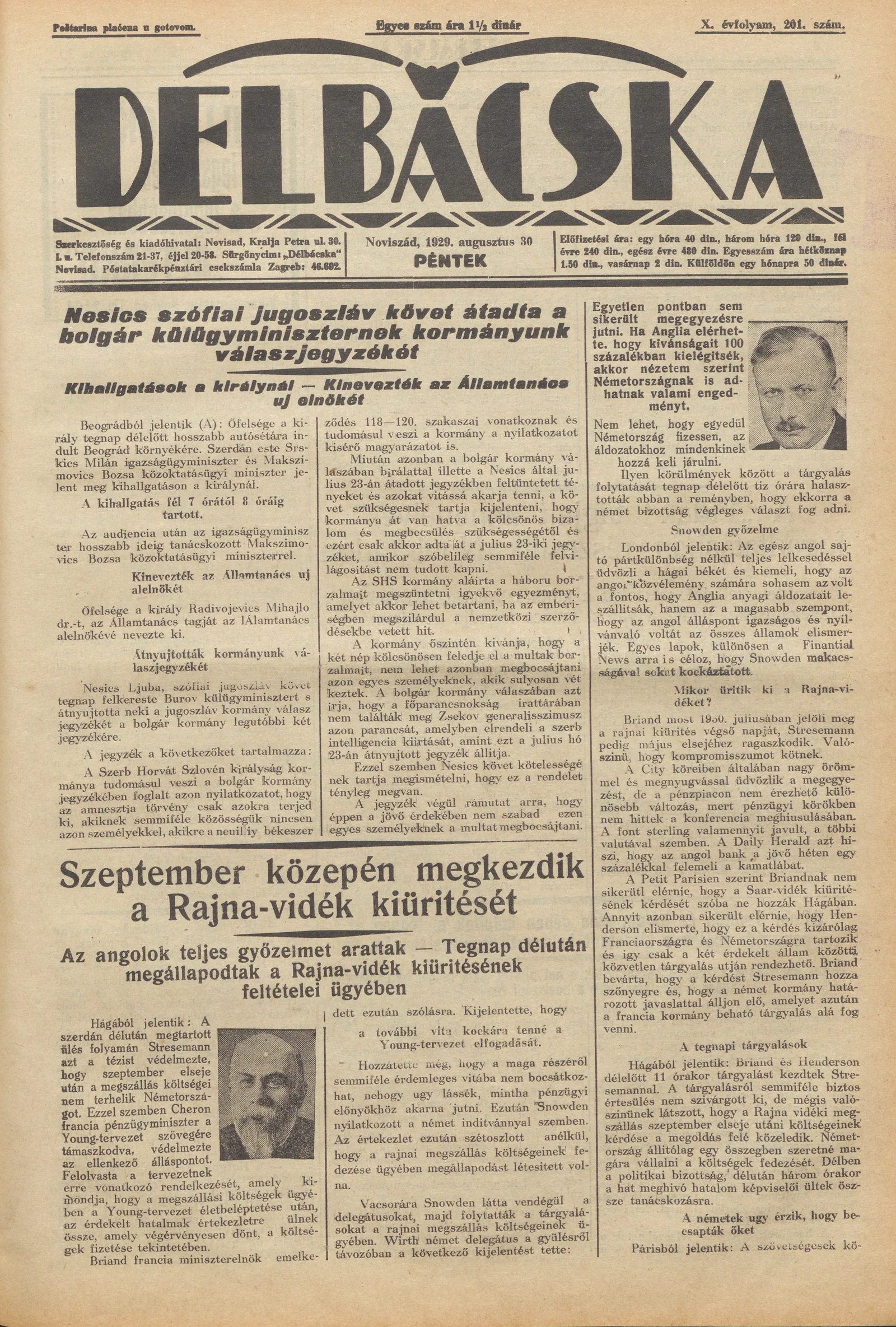 Délbácska, 10. évf. 1929. augusztus 30. 201. sz.