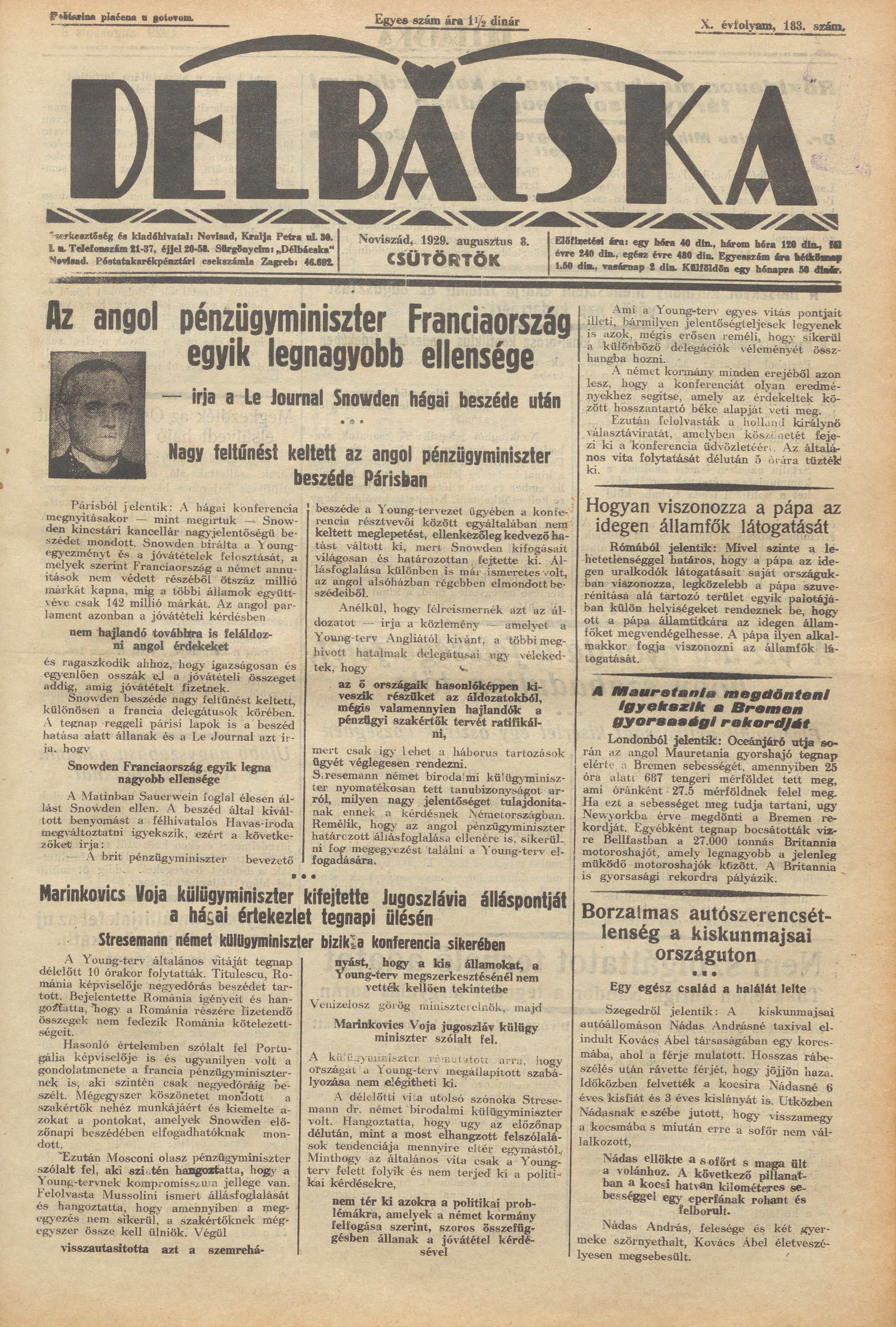 Délbácska, 10. évf. 1929. augusztus 8. 183. sz.