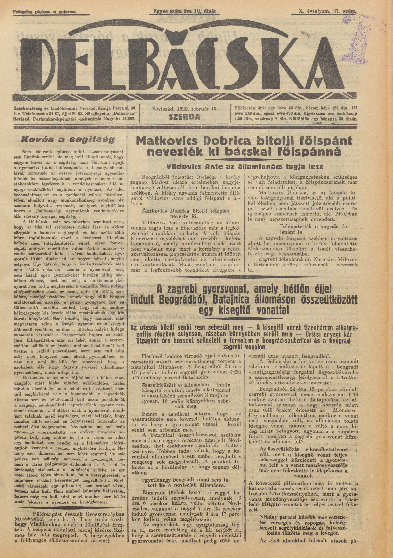 Délbácska, 10. évf. 1929. február 13. 37. sz.