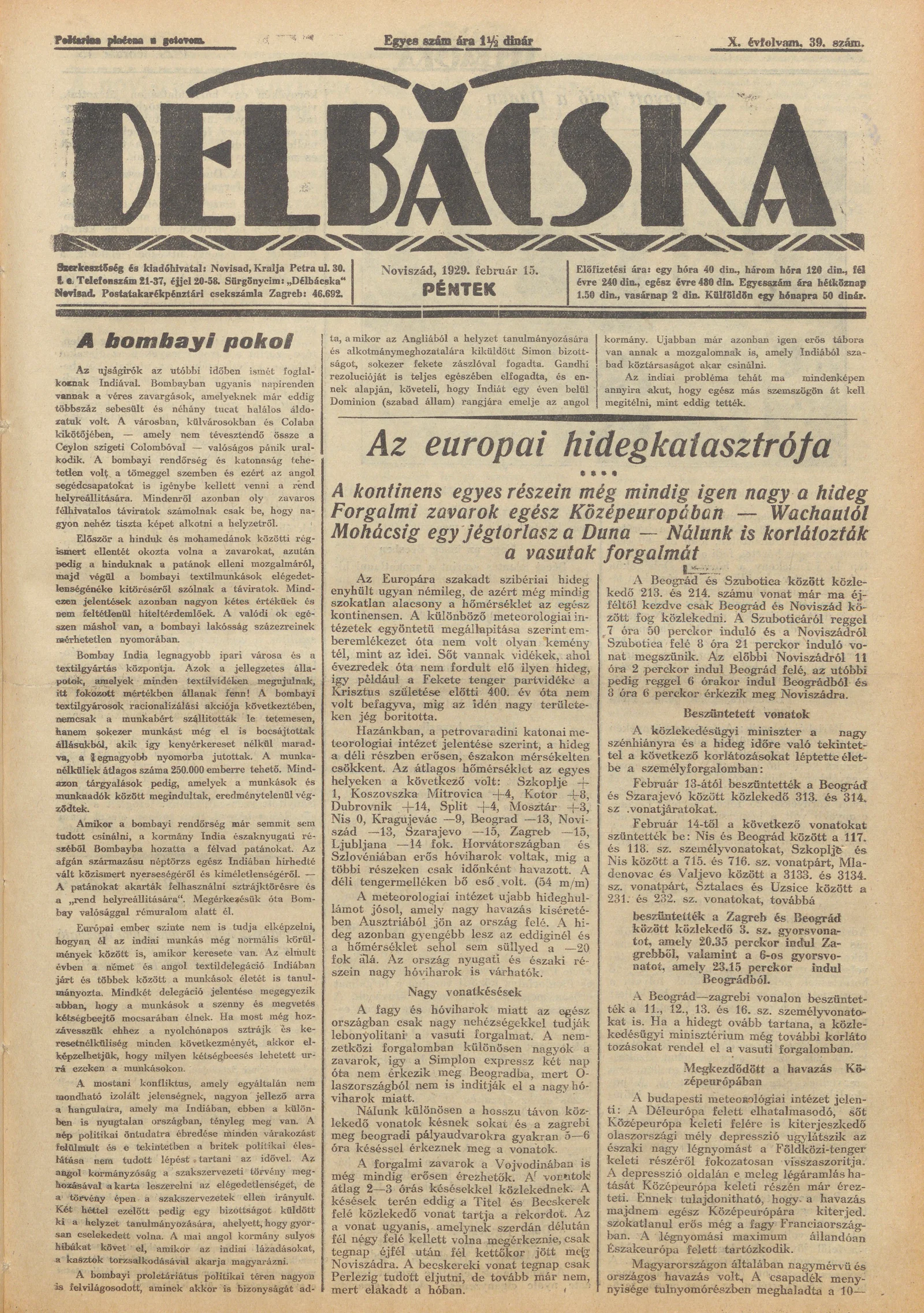 Délbácska, 10. évf. 1929. február 15. 39. sz.