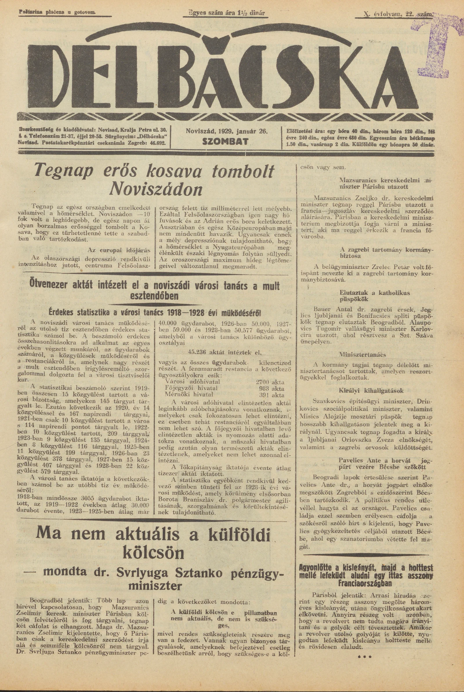 Délbácska, 10. évf. 1929. január 26. 22. sz.