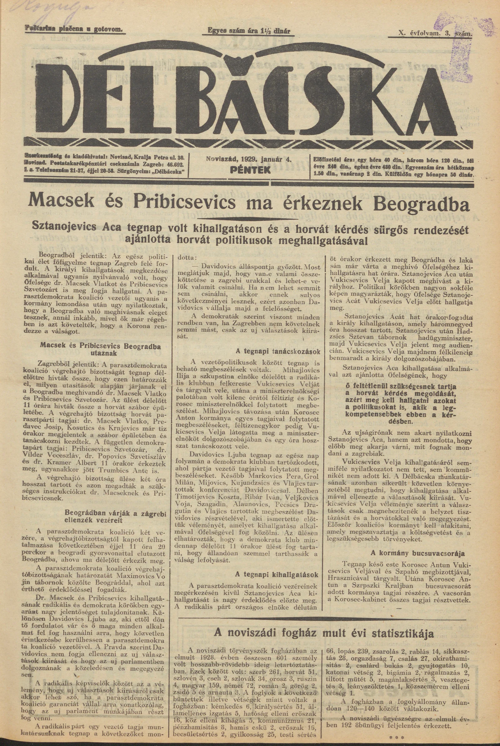 Délbácska, 10. évf. 1929. január 4. 3. sz.