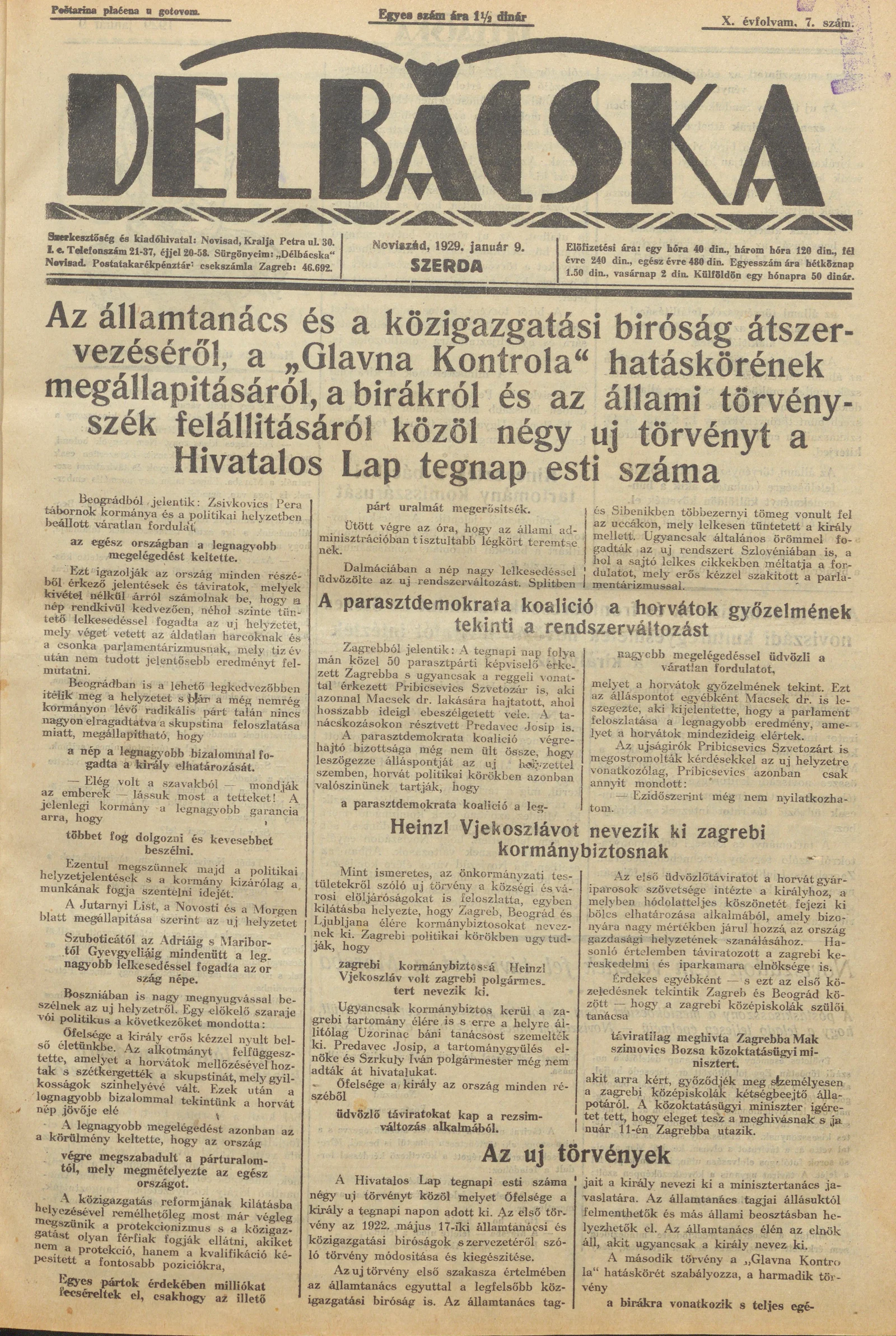 Délbácska, 10. évf. 1929. január 9. 7. sz.