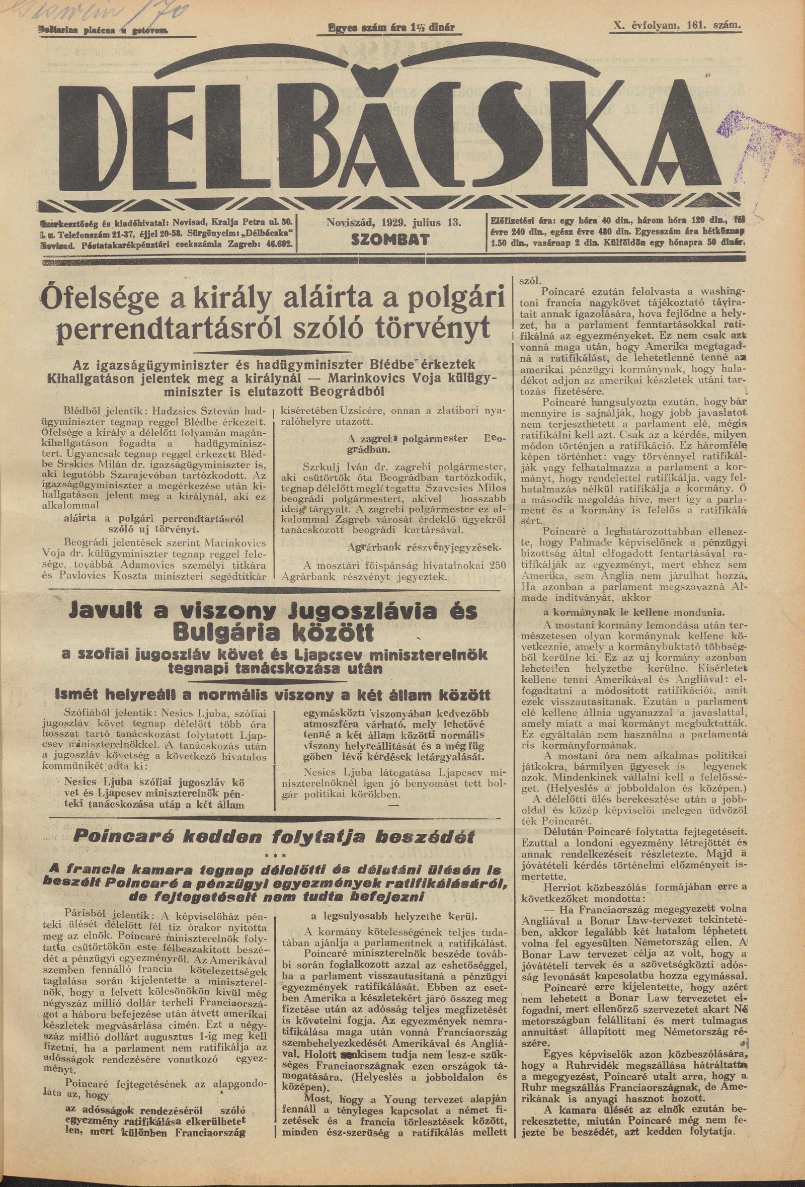 Délbácska, 10. évf. 1929. július 13. 161. sz.