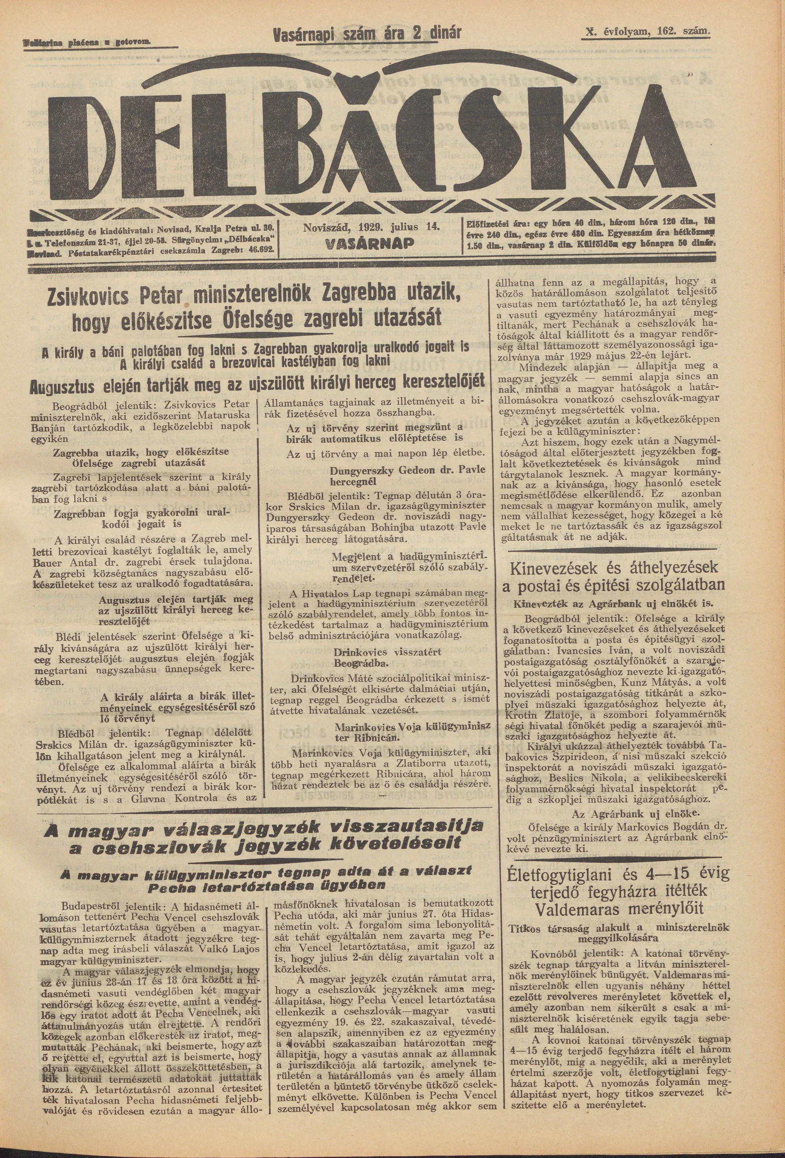 Délbácska, 10. évf. 1929. július 14. 162. sz.