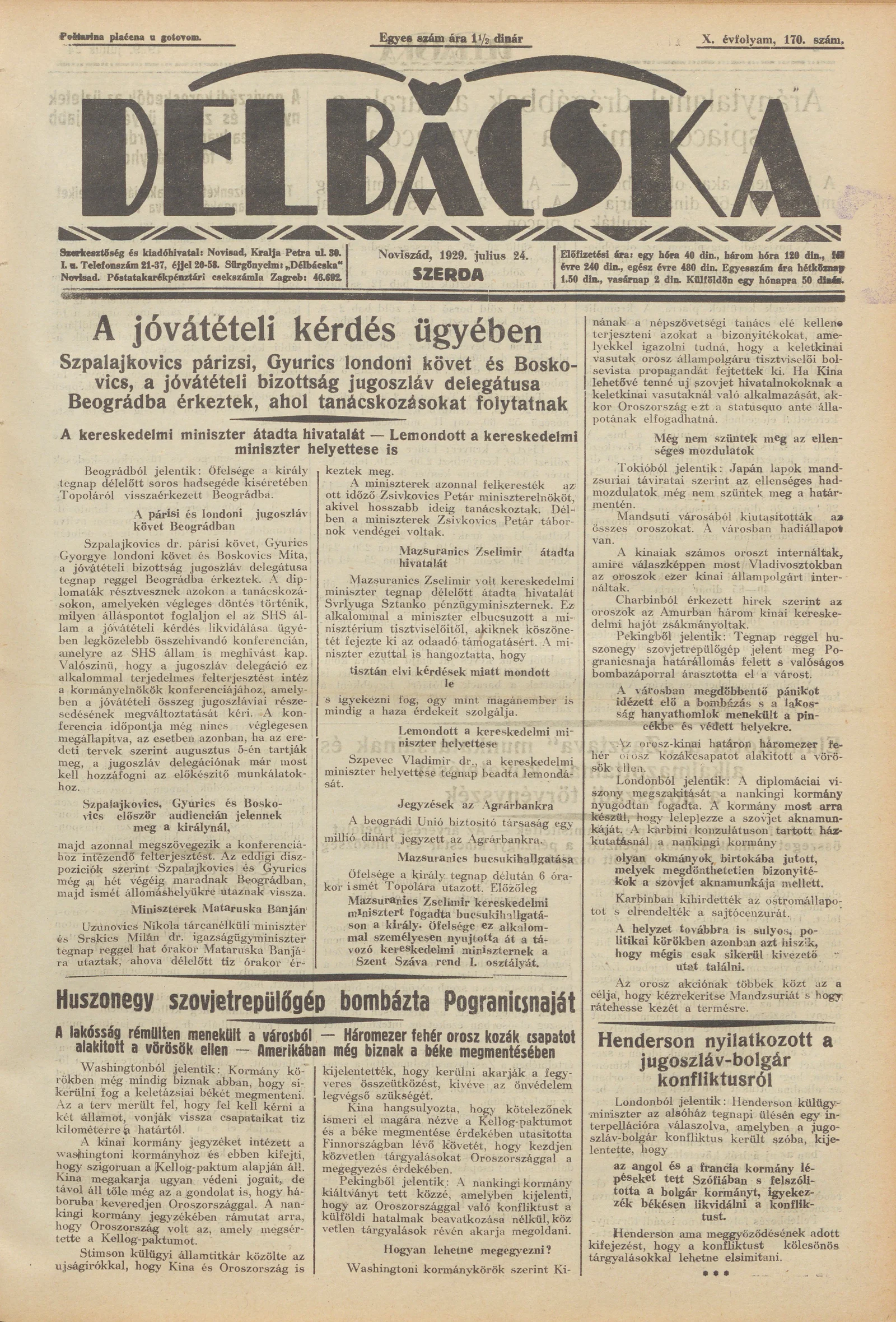 Délbácska, 10. évf. 1929. július 24. 170. sz.