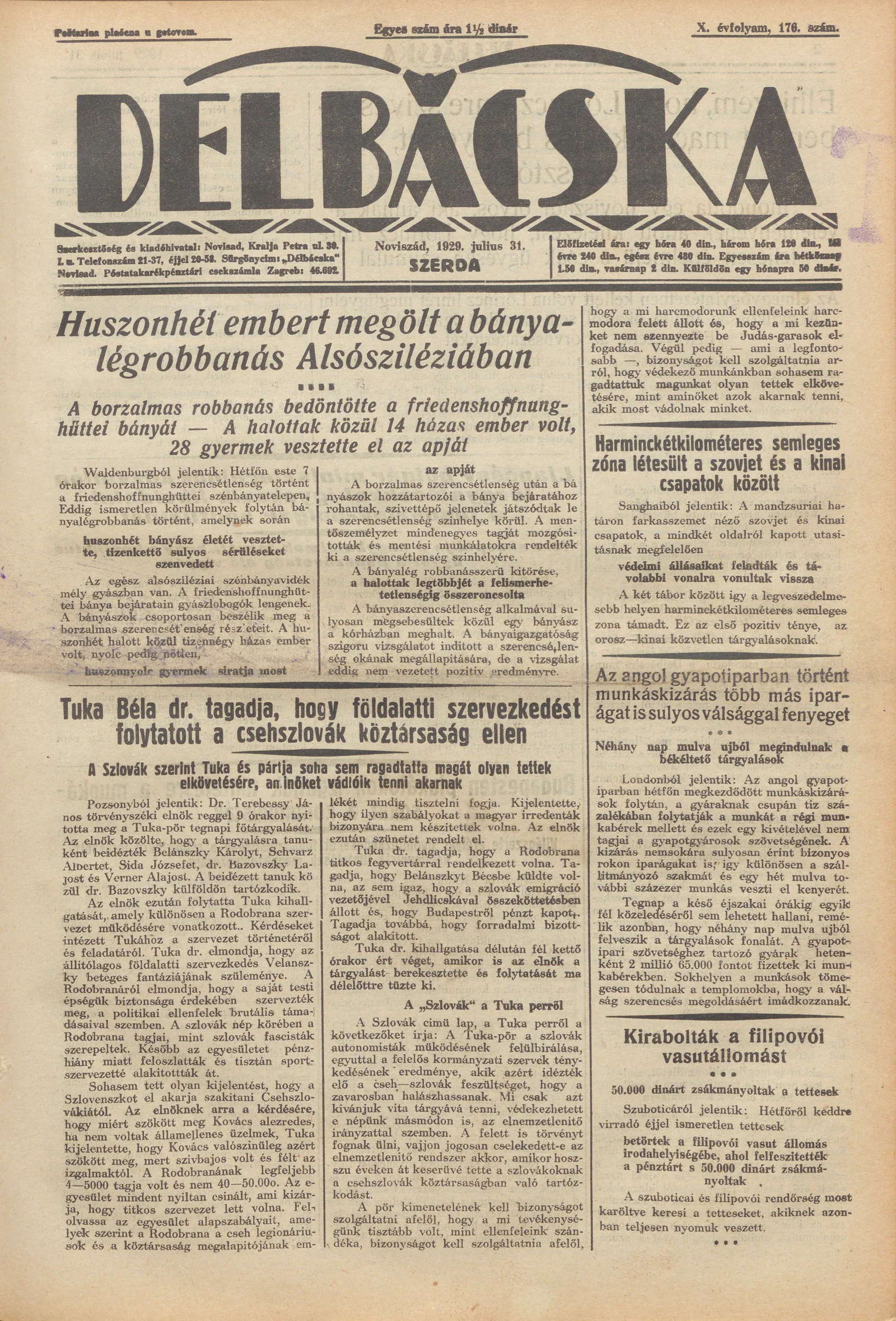Délbácska, 10. évf. 1929. július 31. 176. sz.
