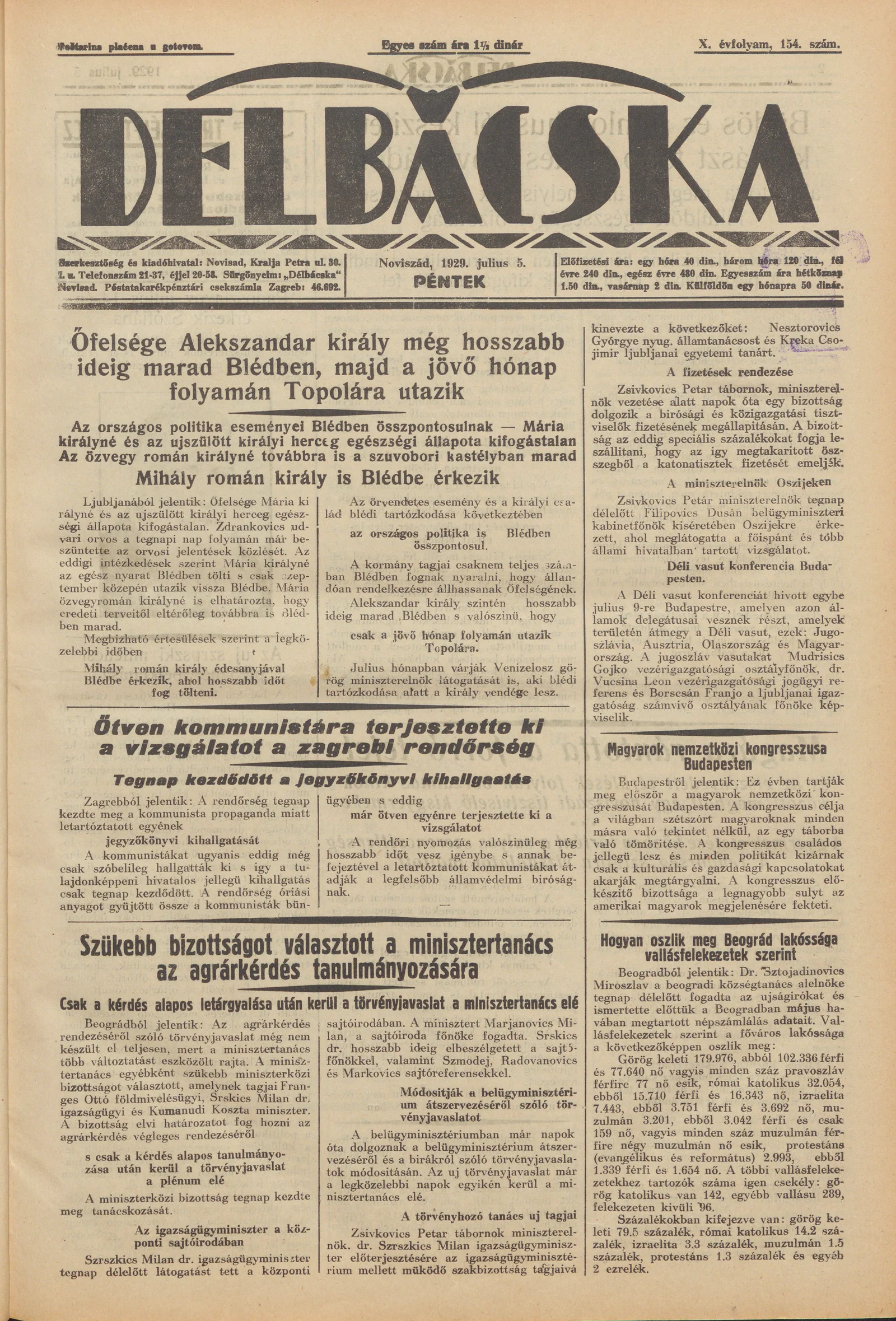 Délbácska, 10. évf. 1929. július 5. 154. sz.
