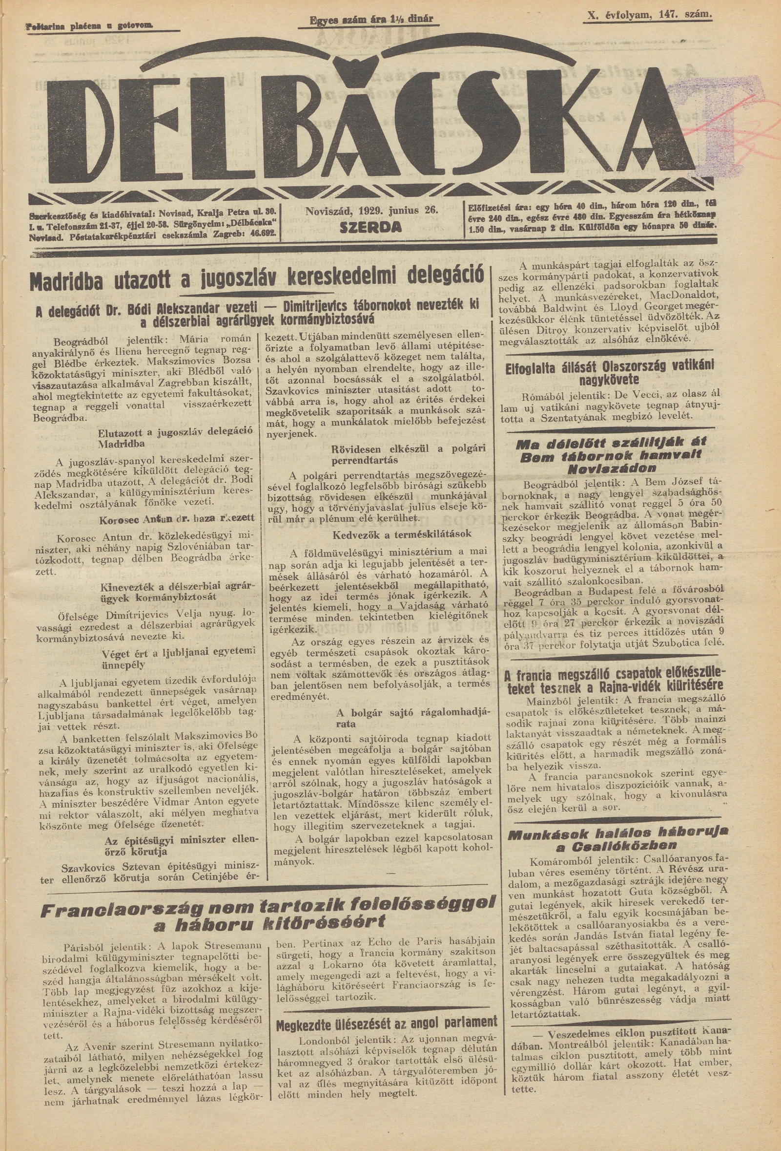 Délbácska, 10. évf. 1929. június 26. 147. sz.