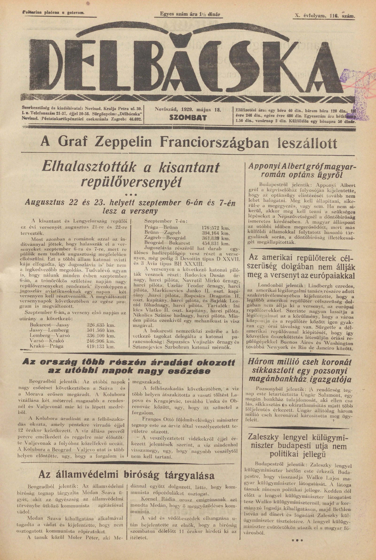 Délbácska, 10. évf. 1929. május 18. 116. sz.