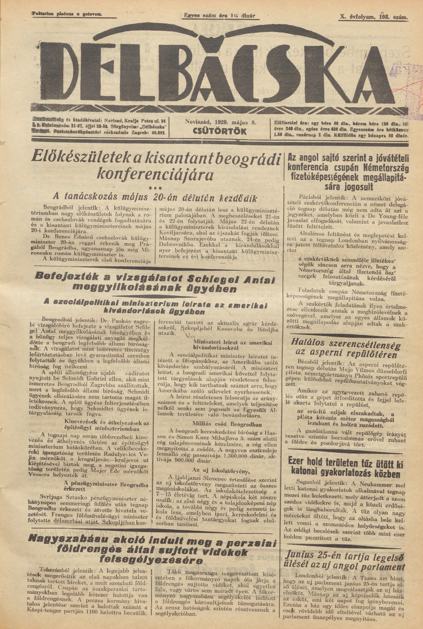 Délbácska, 10. évf. 1929. május 9. 108. sz.
