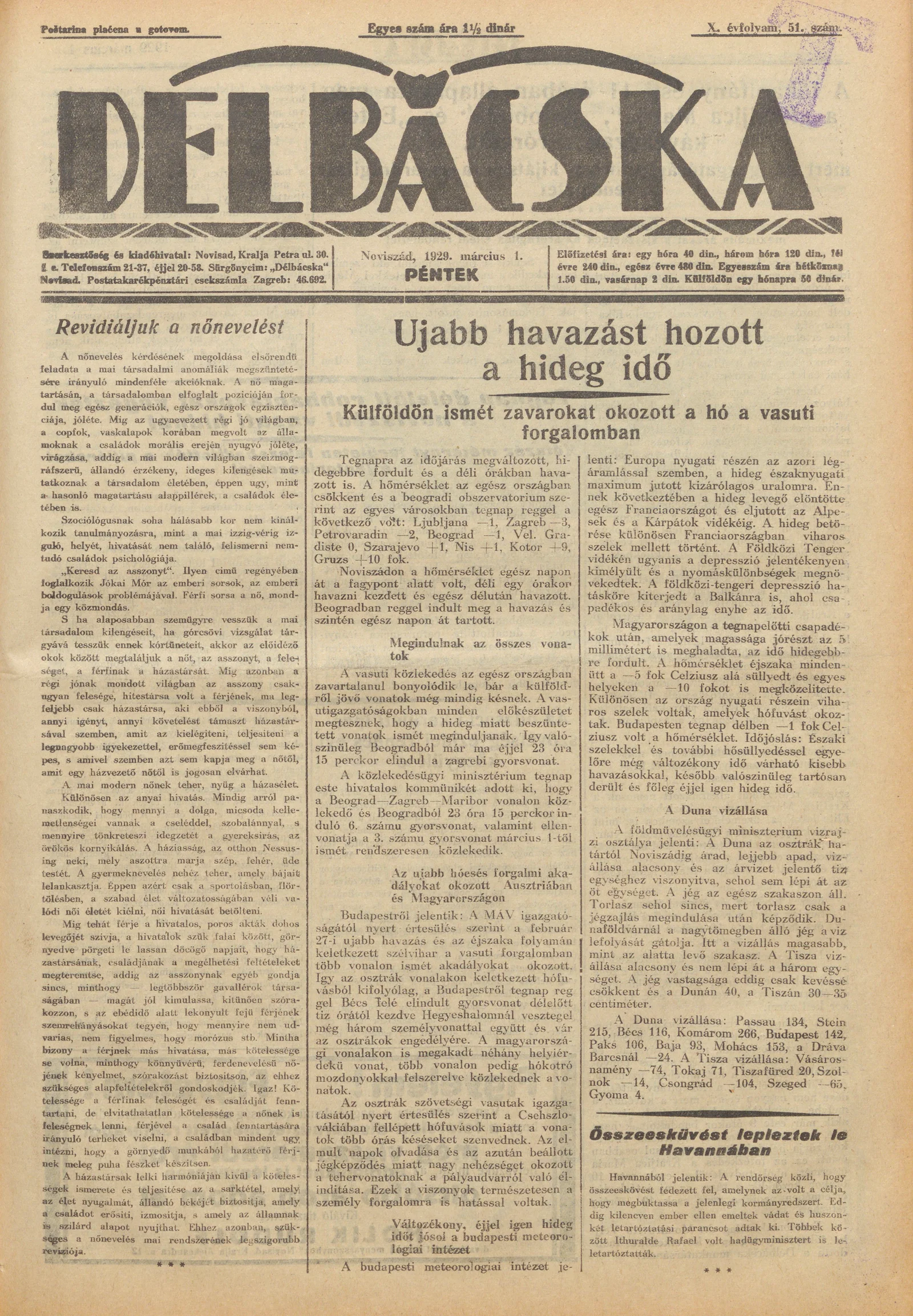 Délbácska, 10. évf. 1929. március 1. 51. sz.