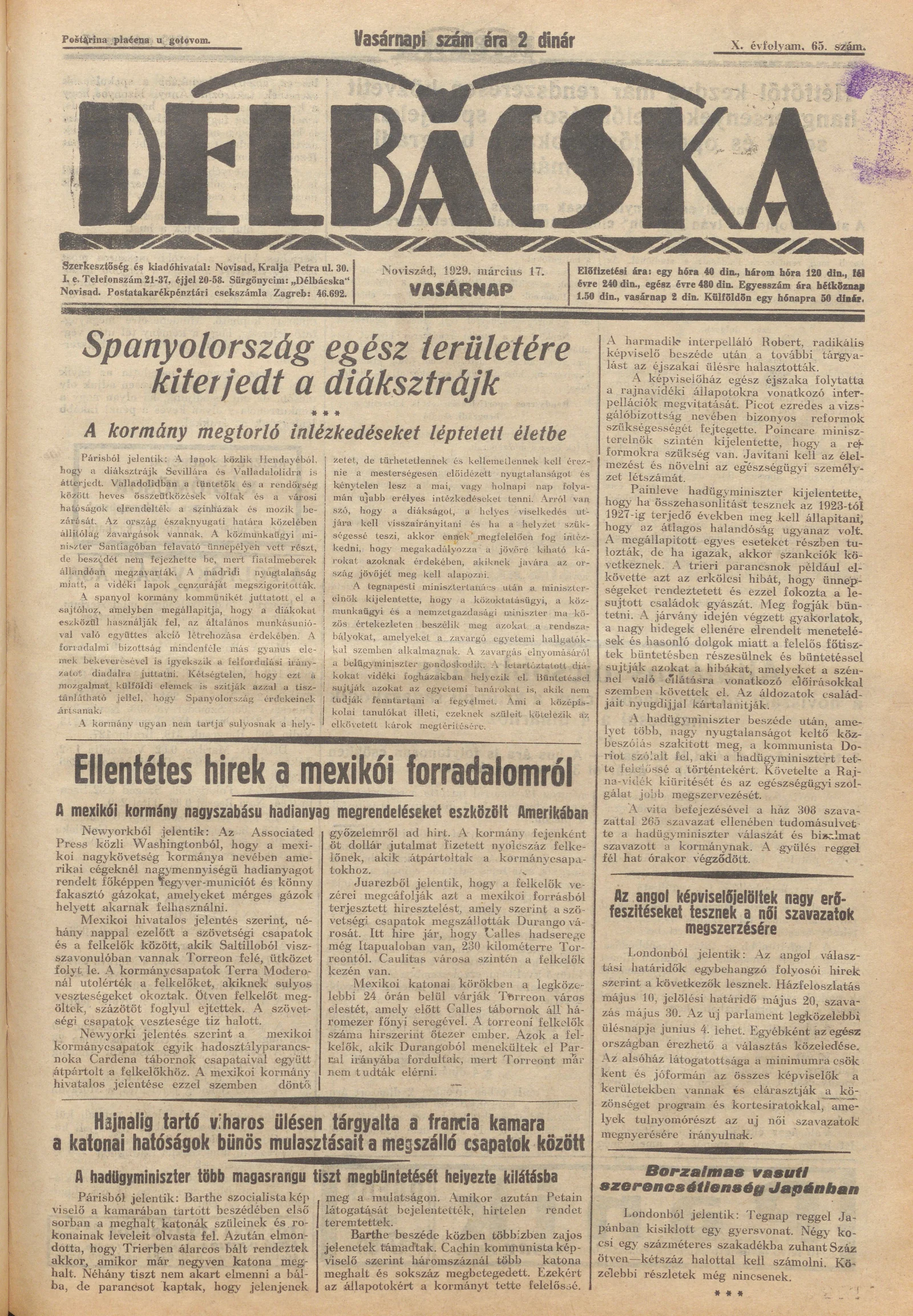 Délbácska, 10. évf. 1929. március 17. 65. sz.
