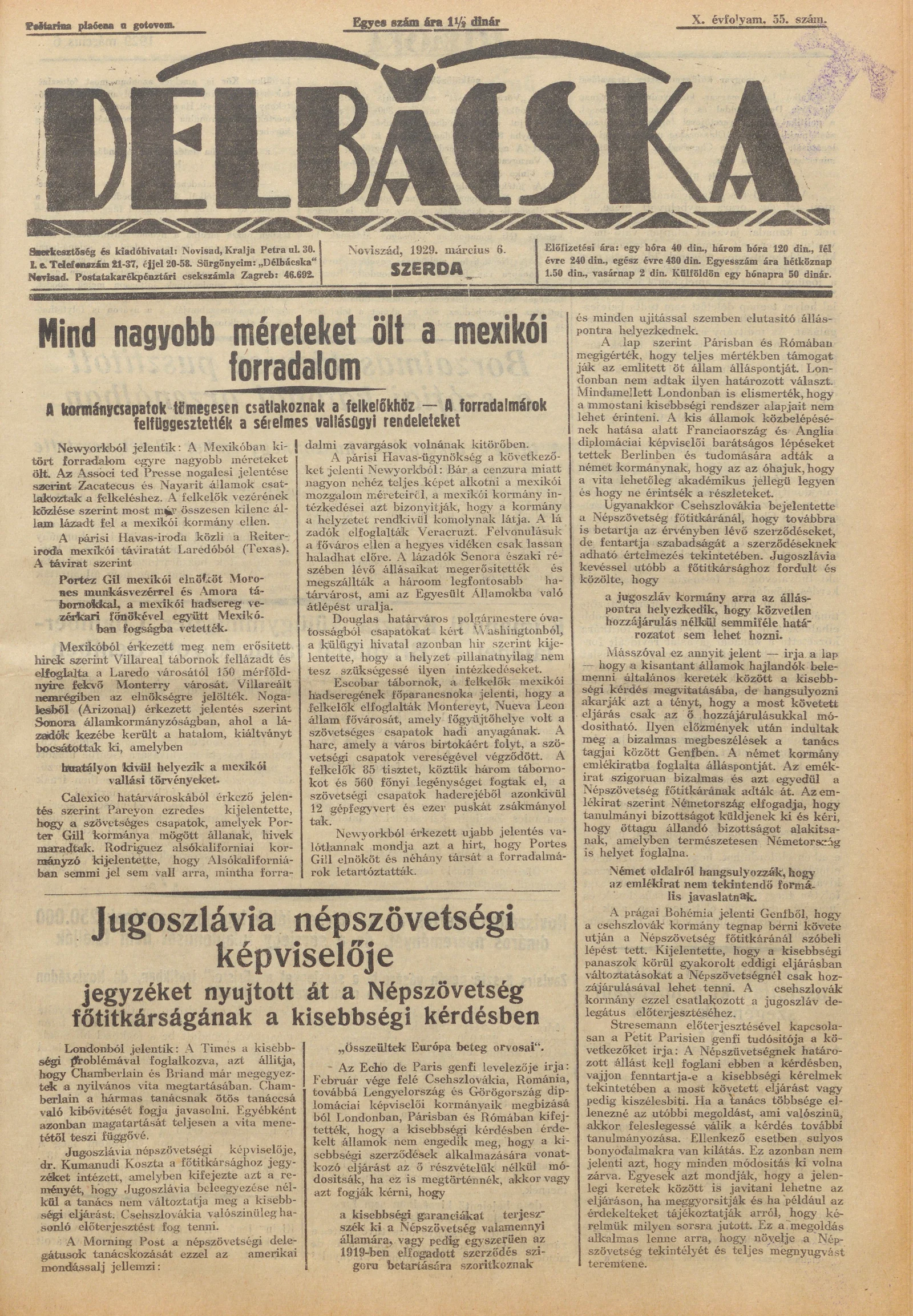 Délbácska, 10. évf. 1929. március 6. 55. sz.