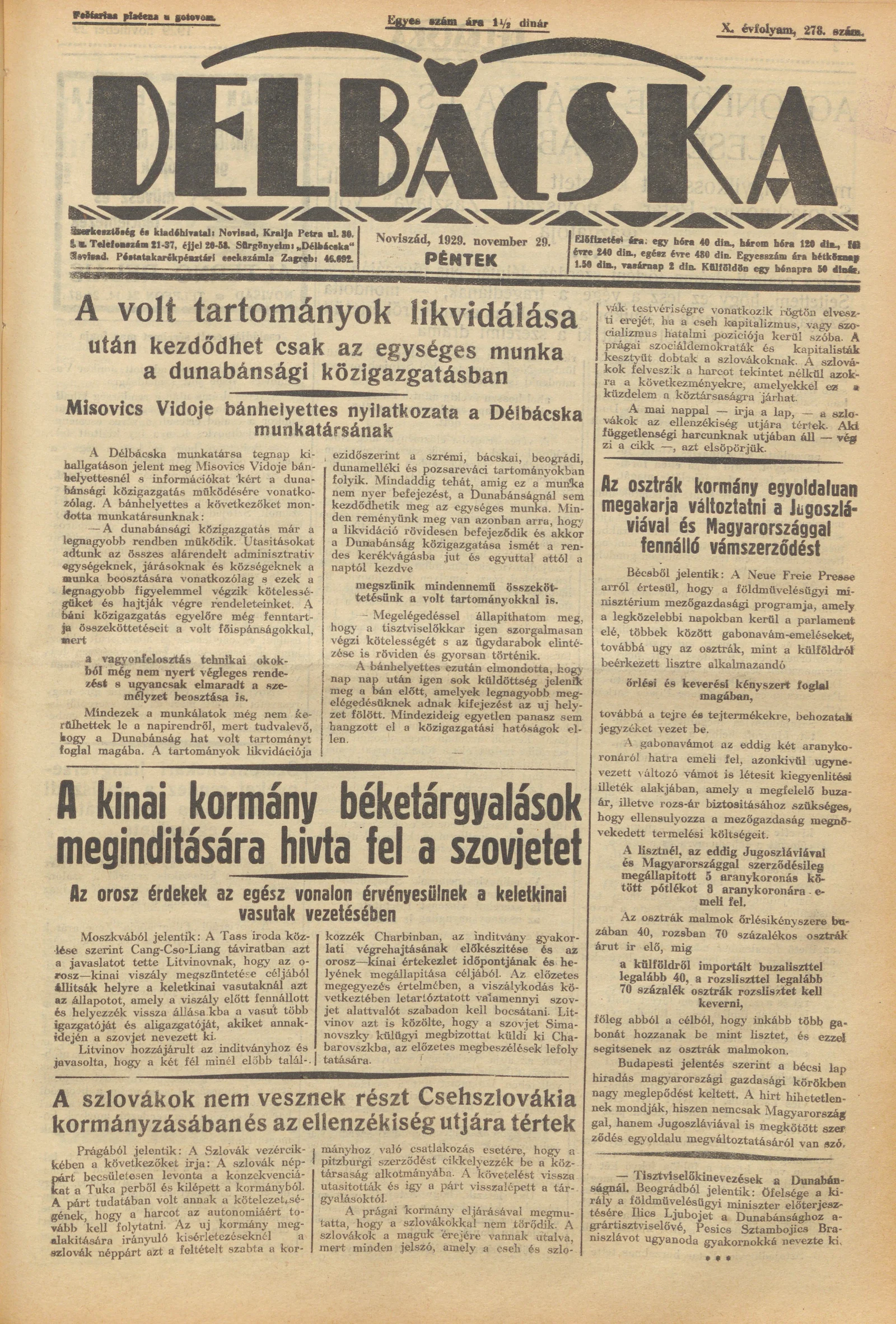 Délbácska, 10. évf. 1929. november 29. 278. sz.