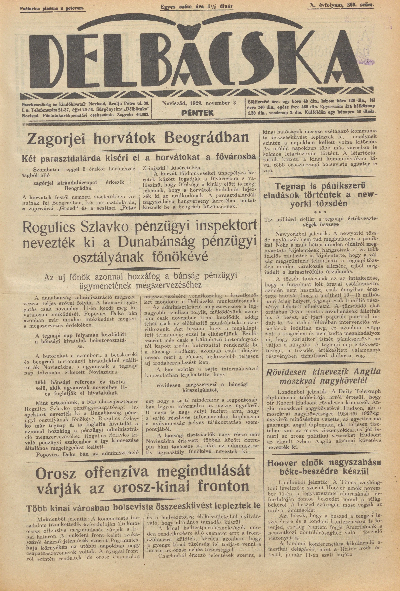 Délbácska, 10. évf. 1929. november 8. 260. sz.