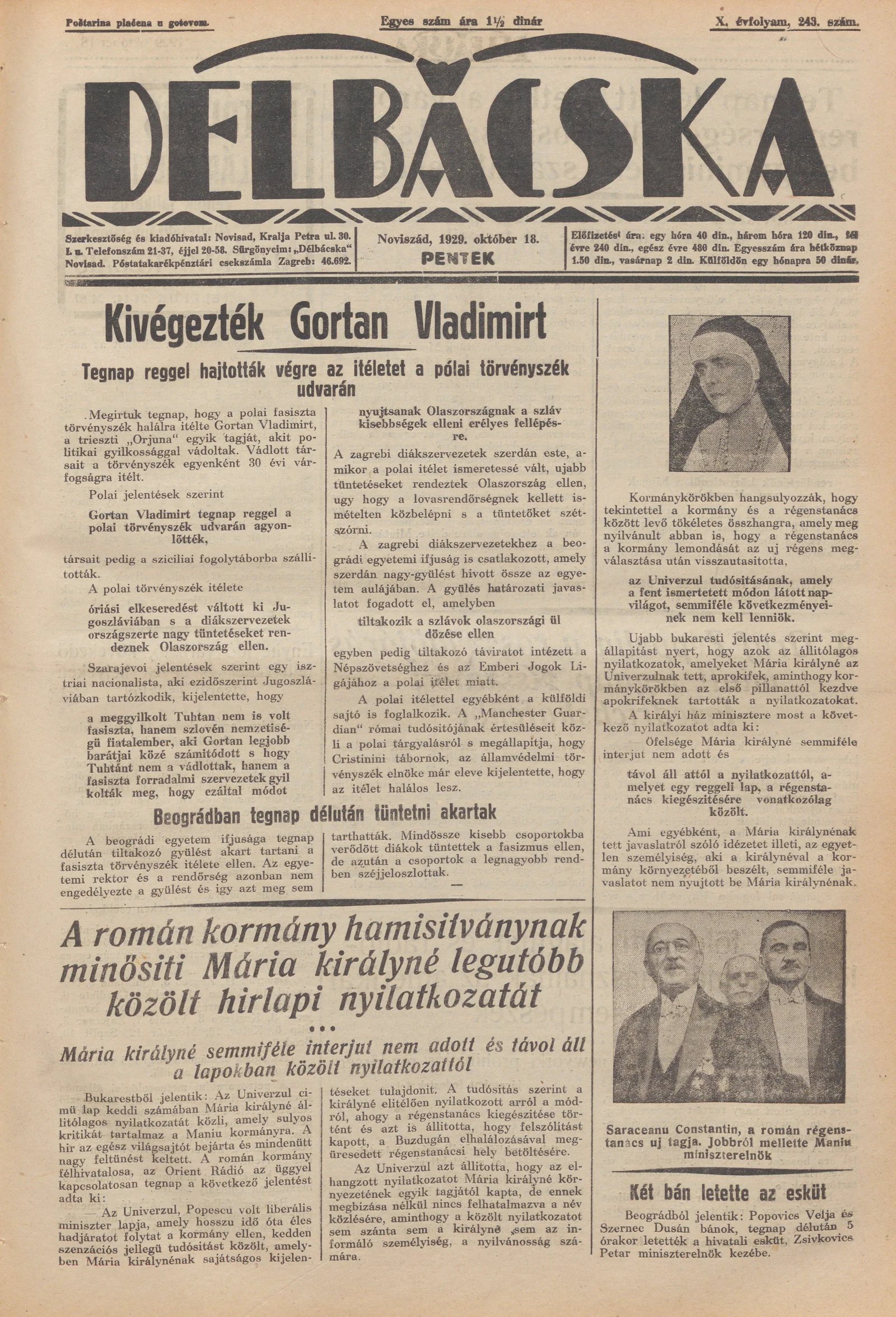 Délbácska, 10. évf. 1929. október 18. 243. sz.
