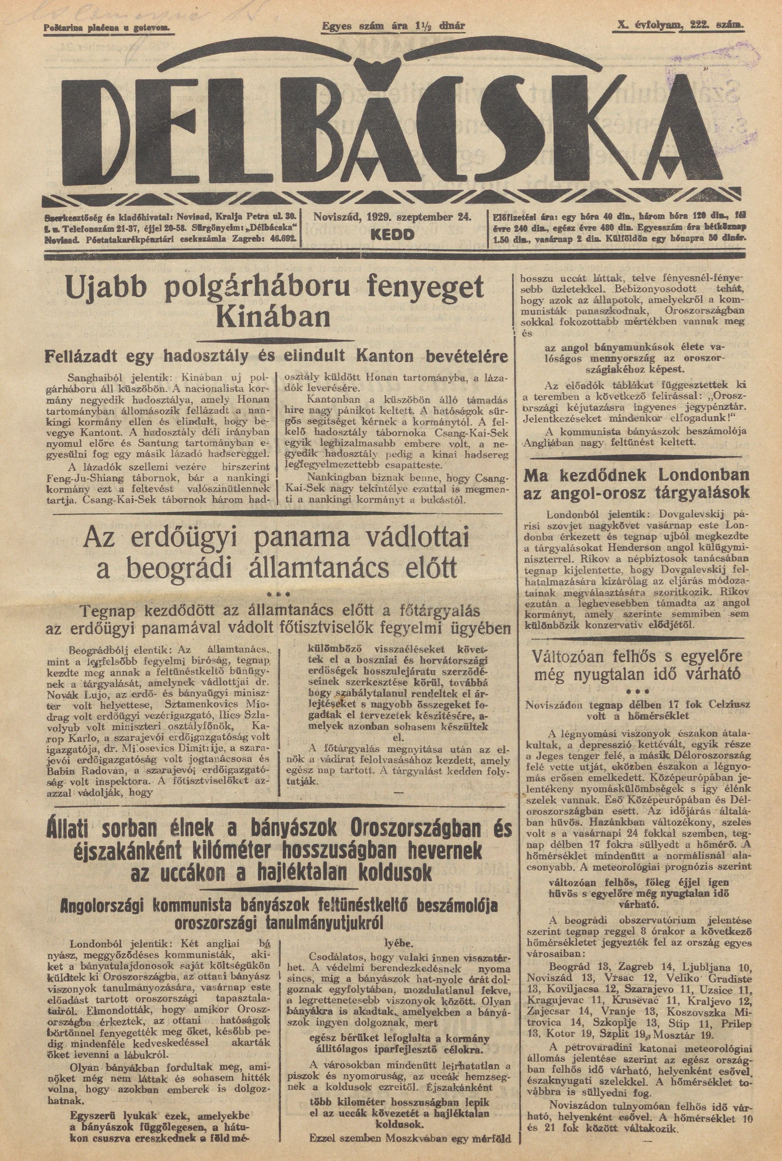 Délbácska, 10. évf. 1929. szeptember 24. 222. sz.