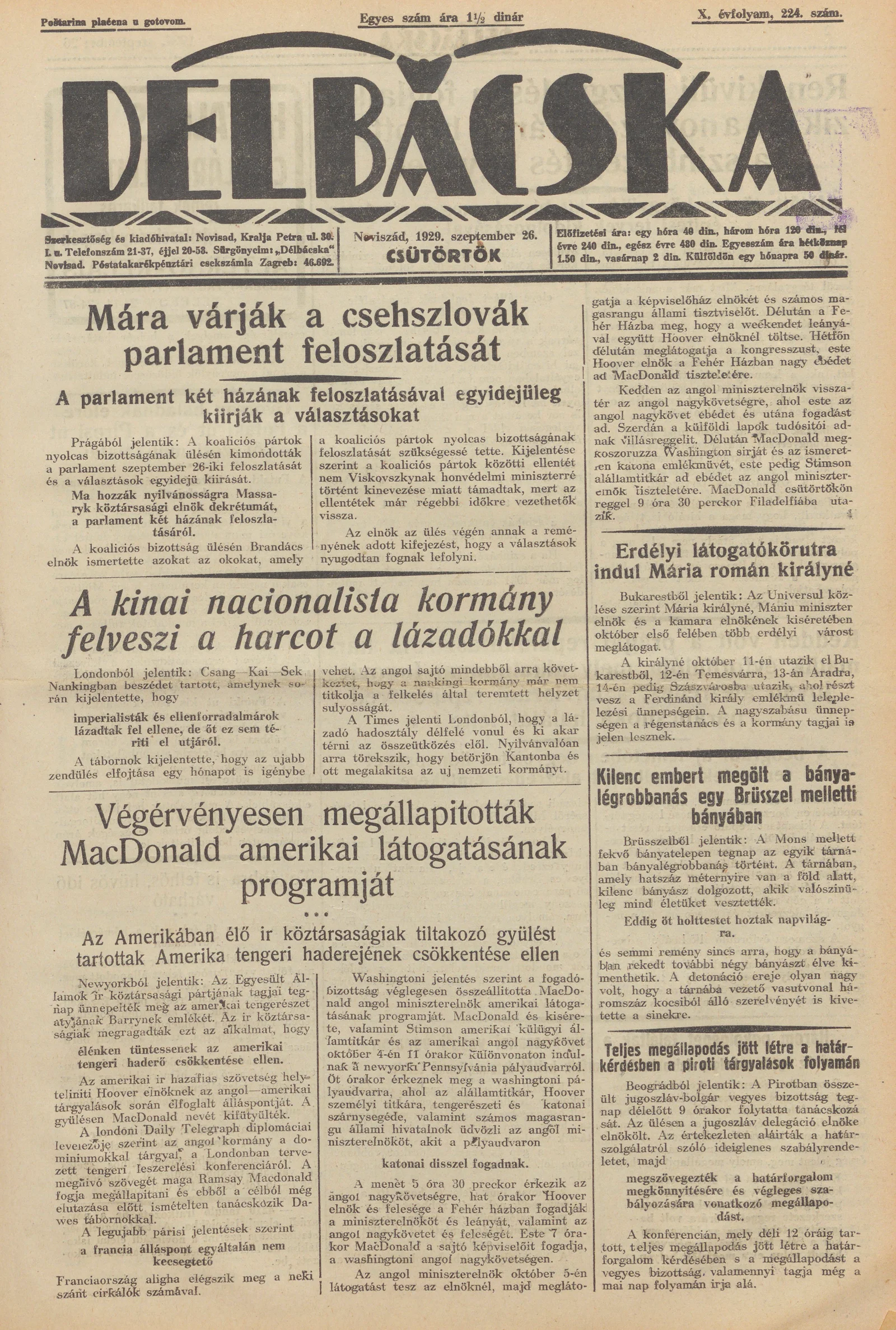 Délbácska, 10. évf. 1929. szeptember 26. 224. sz.
