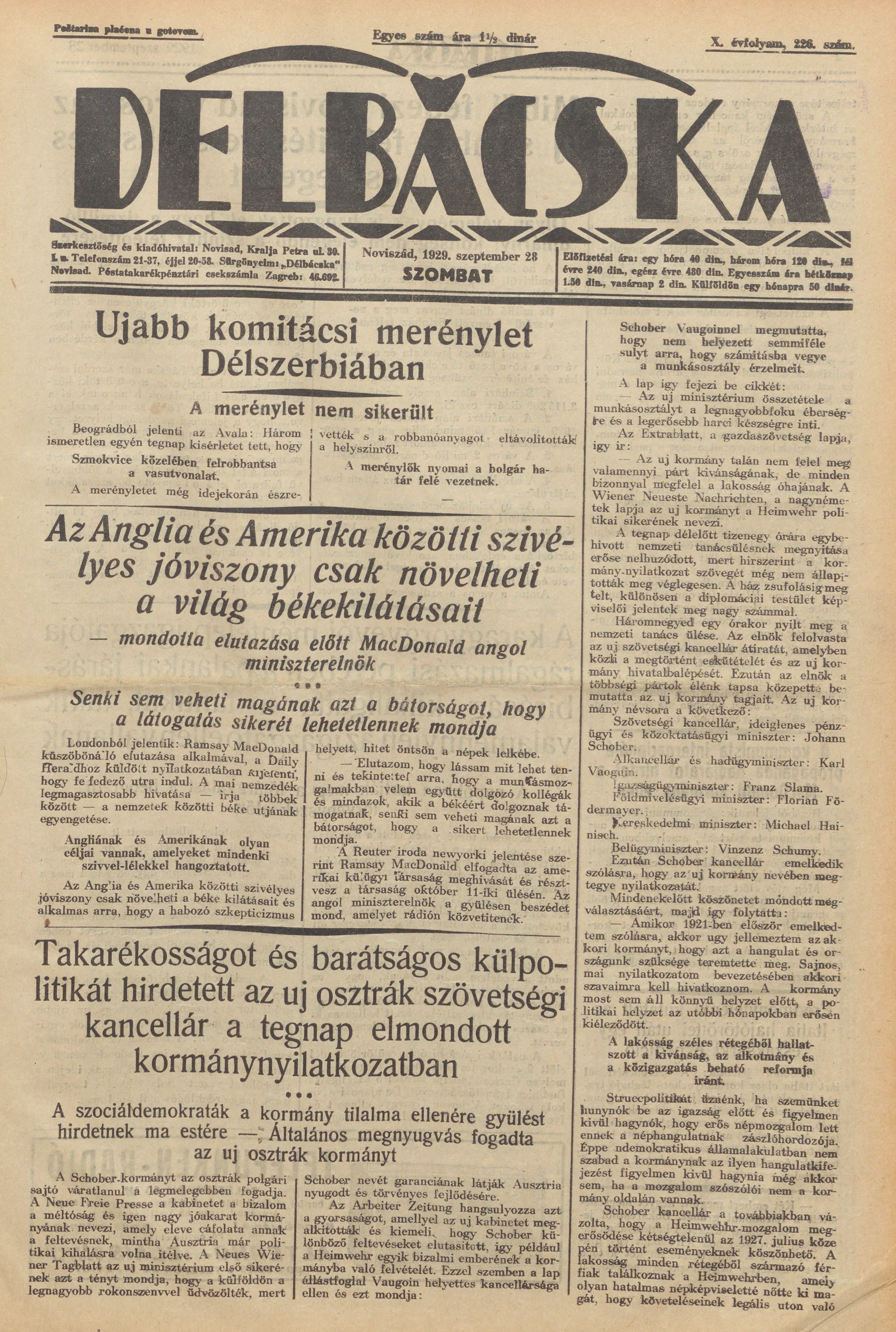 Délbácska, 10. évf. 1929. szeptember 28. 226. sz.