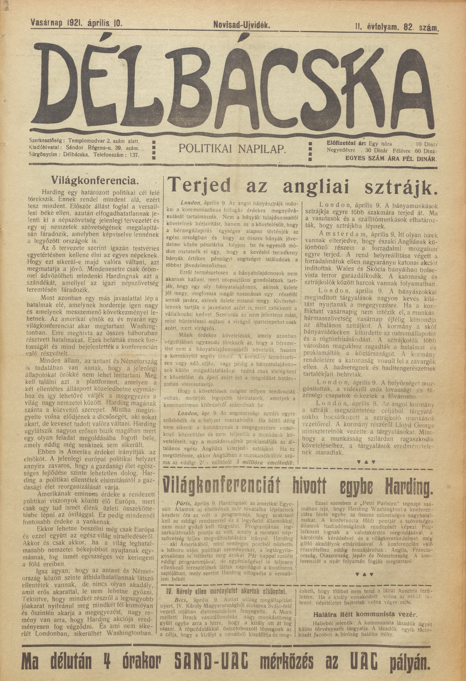 Délbácska, 2. évf. 1921. április 10. 82. sz.