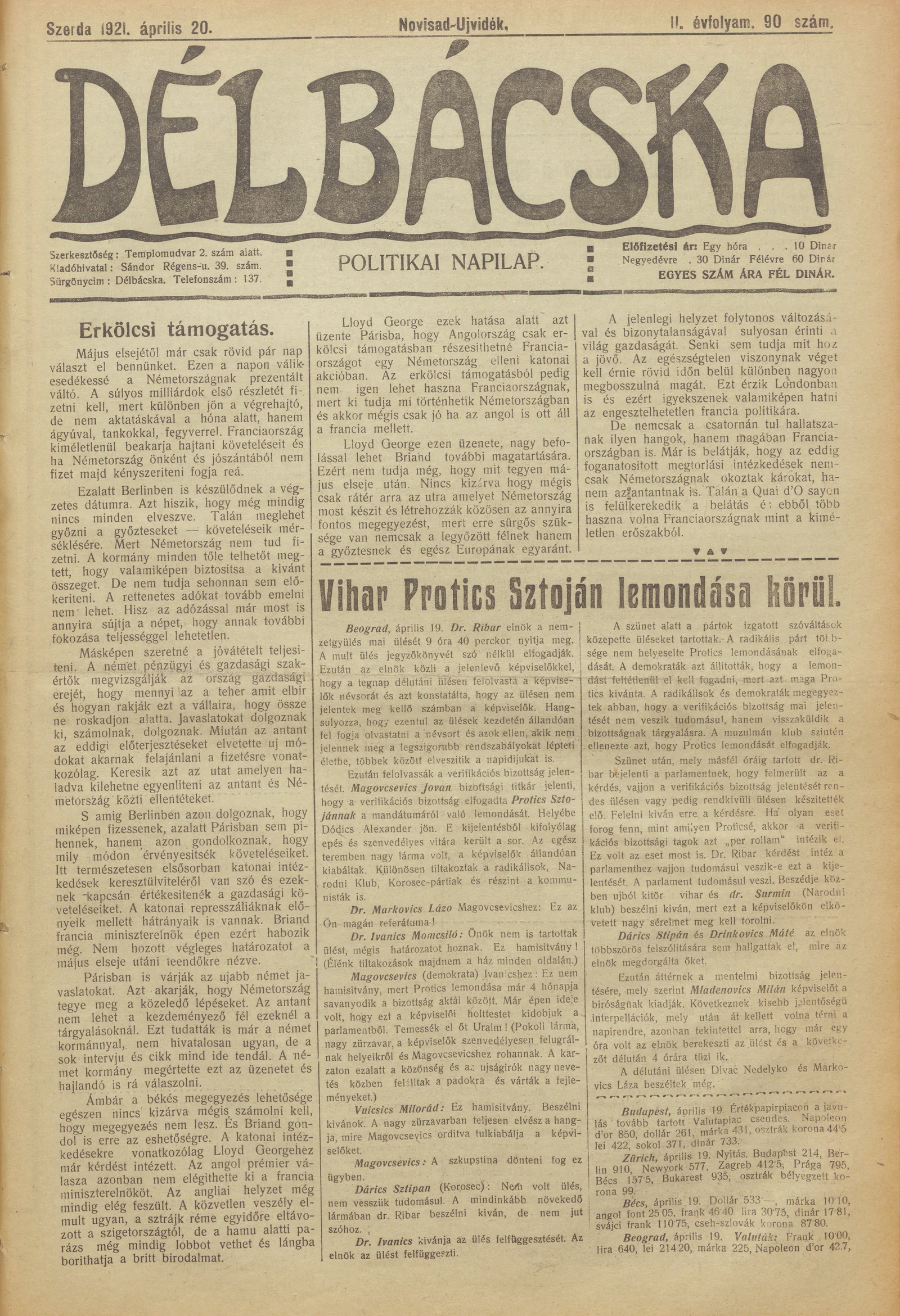 Délbácska, 2. évf. 1921. április 20. 90. sz.
