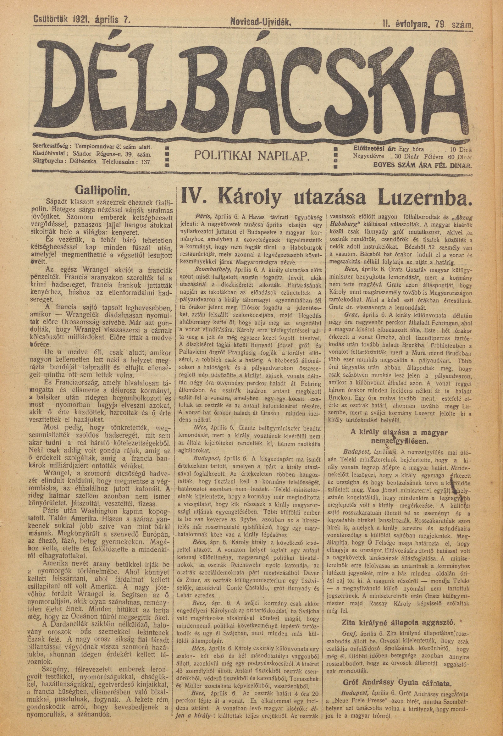 Délbácska, 2. évf. 1921. április 7. 79. sz.