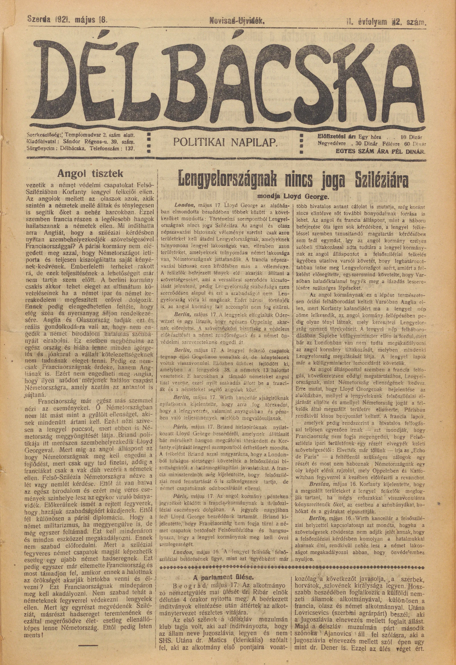 Délbácska, 2. évf. 1921. május 18. 112. sz.