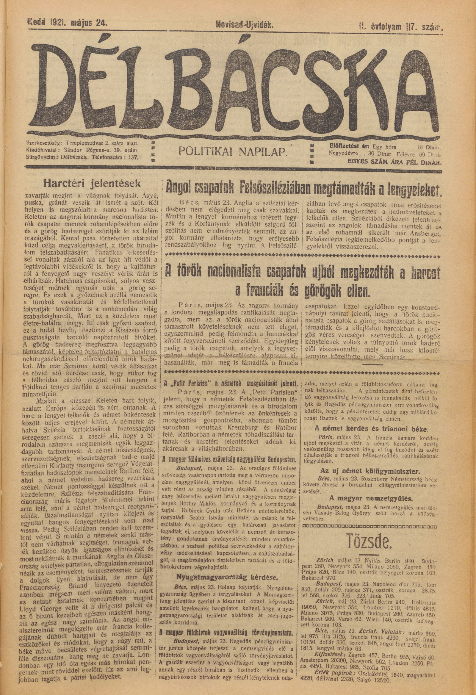 Délbácska, 2. évf. 1921. május 24. 117. sz.